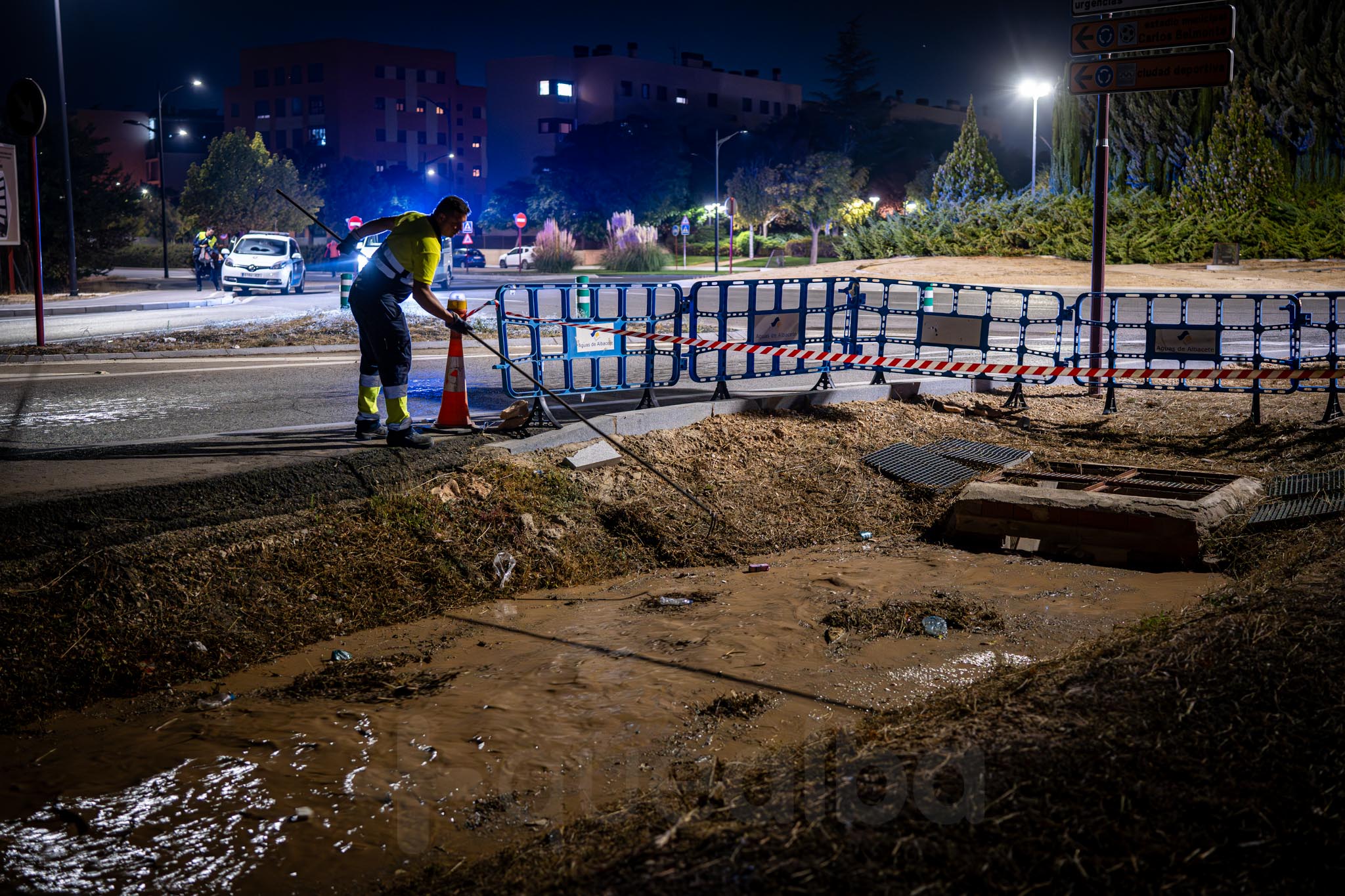 Alrededor de las 22 horas el operativo en la zona es importante, para vigilar lo que sucede y tratar de mitigar, en la mayor medida posible, los efectos de la tromba de agua que llega desde Chinchilla de Montearagón, donde se registraba una fuerte tormenta estática.