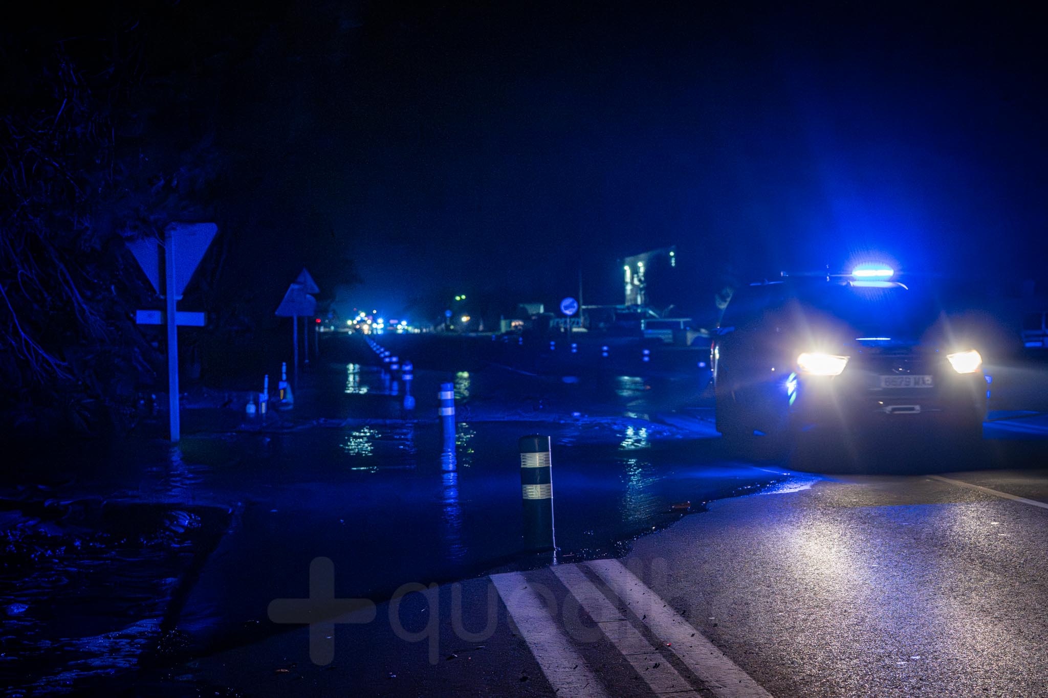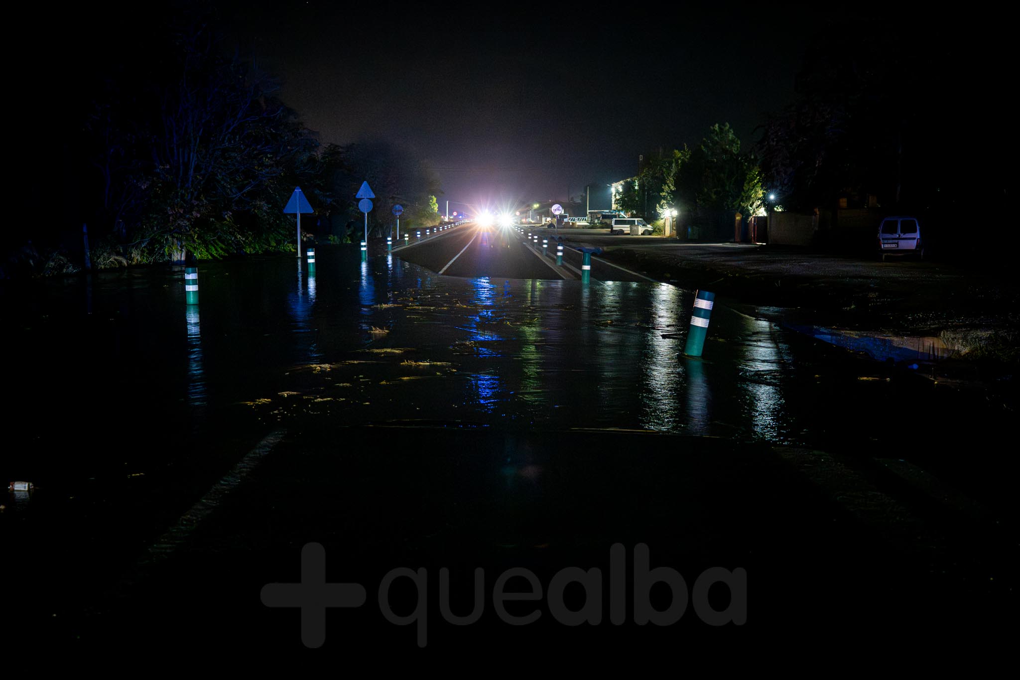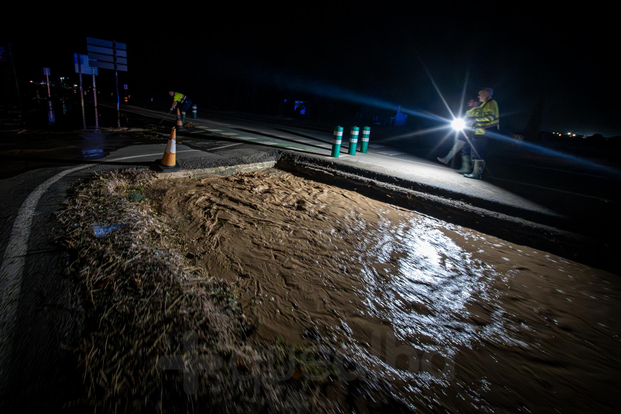 Alrededor de las 21.20 horas empezaba a llegar el agua y media hora después ya se podía ver a ambos lados de la calzada. El acceso está cortado y los vecinos siguen lo que sucede con temor.