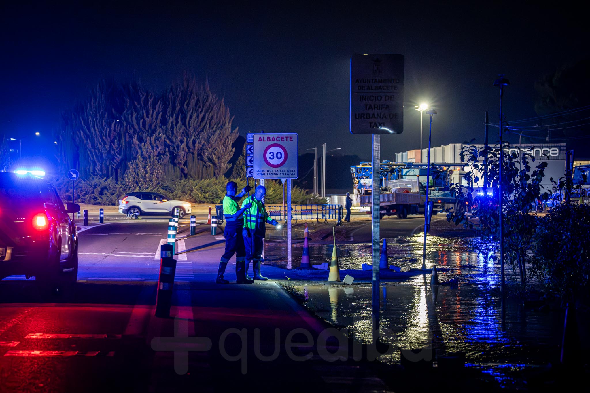 El Ayuntamiento de Albacete tiene al personal de servicio de Policía Local, Bomberos, Aguas de Albacete y Protección Civil trabajando en la zona, para garantizar la seguridad de los vecinos afectados y restablecer la circulación lo antes posible.