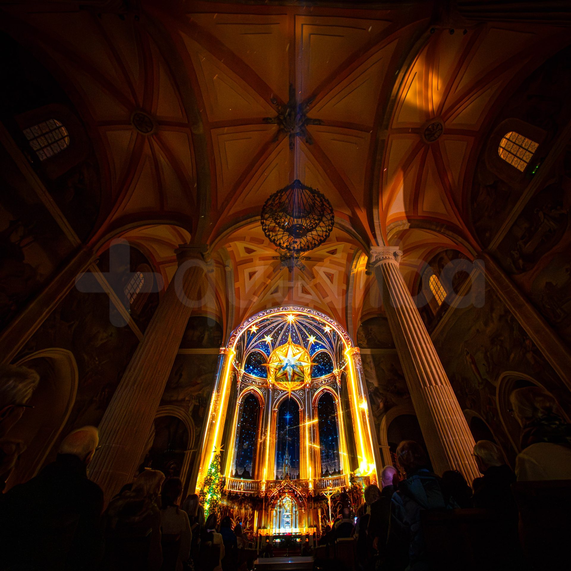 El alcalde ha agradecido la colaboración de la Diócesis de Albacete y la parroquia de San Juan, y el trabajo de los equipos artísticos y técnicos que han hecho posible el proyecto ‘Luz: el Ciclo Eterno’. Se trata de una pieza audiovisual inmersiva creada específicamente para la bóveda frontal de la Catedral, que en cinco minutos y medio de proyección realiza un viaje simbólico desde la oscuridad del origen, hasta la Estrella de Belén. La pieza se estructura en cinco actos que exploran el ciclo de la creación a través de luz, música y efectos visuales generativos.