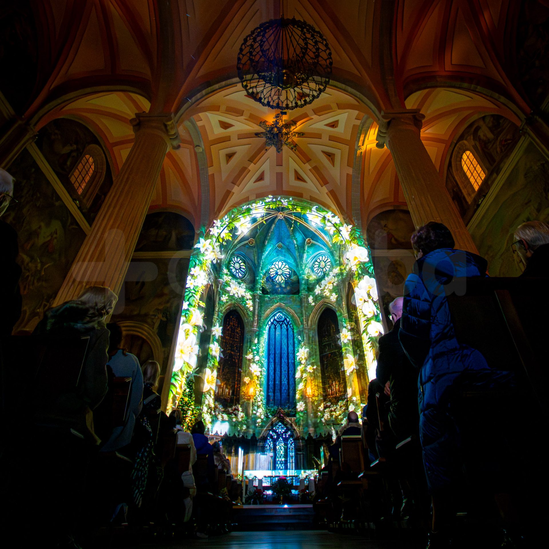 El ábside del templo ha sido el privilegiado lugar sobre el que se ha hecho una proyección combinada de luz, color y movimiento, que pone en valor la riqueza artística de la Catedral mediante nuevas formas de expresión “llenas de calidad y sensibilidad”.