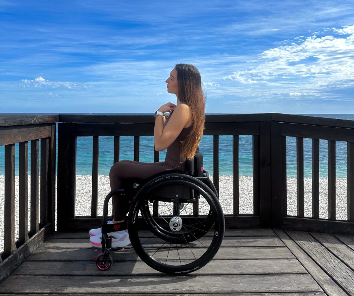 Se trata de Andrea Pérez Selles, de 24 años. Era jugadora de pádel profesional y estudiante de Marketing en la Universidad de Alicante. El 27 de agosto de 2023 tuvo un accidente que le causó una lesión medular, motivo por el que tuvo que contar para su movilidad con una silla de ruedas. Andrea, que es una joven risueña y despierta, no tiró la toalla y dio lo mejor de sí en su recuperación.