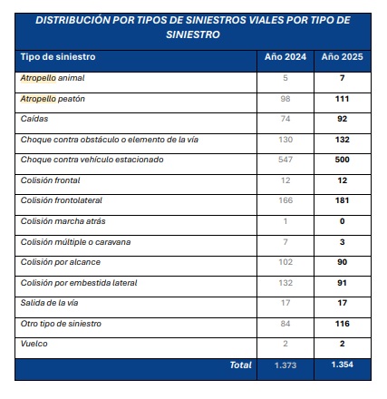 Eso sí, cabe señalar que el número de siniestros baja levemente, de los 1.373 que se dieron en 2024 a 1.354 en 2025.