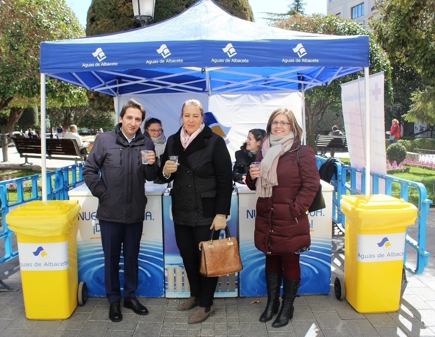 Con el objetivo de fomentar el consumo de agua del grifo, Aguas de Albacete ha instalado una fuente de agua en la Plaza del Altozano. De este modo, quien lo desee puede satisfacer su sed, hidratarse y comprobar la calidad del agua de Albacete. La concejal de Barrios y Pedanías, Llanos Navarro, y el director gerente de Aguas de Albacete, Pepe Belda, visitaban la fuente de agua que, como es habitual, es atendida por personal de Amiab, asociación con la que Aguas de Albacete colabora habitualmente.