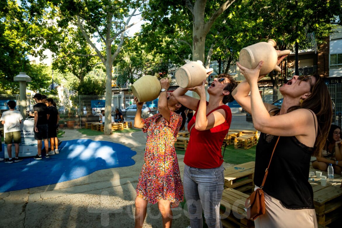 Este punto de descanso e hidratación cuenta con fuentes de agua del grifo, gratuitas, para las personas que acudan al área de descanso. Los botijos en los que también se ofrece agua, por cierto, están de nuevo generando un gran interés tanto por niños como jóvenes y mayores que asisten a este espacio para tomar fuerzas.