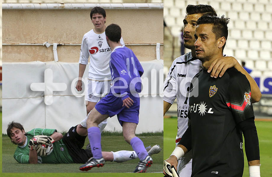 Agus, ahora de vuelta al Albacete Balompié, y Casto, portero del Almería y ex del Alba, se enfrentaban este domingo sobre el terreno de juego, pero tras el partido les veíamos conversar de manera amistoso. Hemos querido recordar también una imagen de 2005, hace ahora una década, con ambos entonces en el Albacete Balompié B.