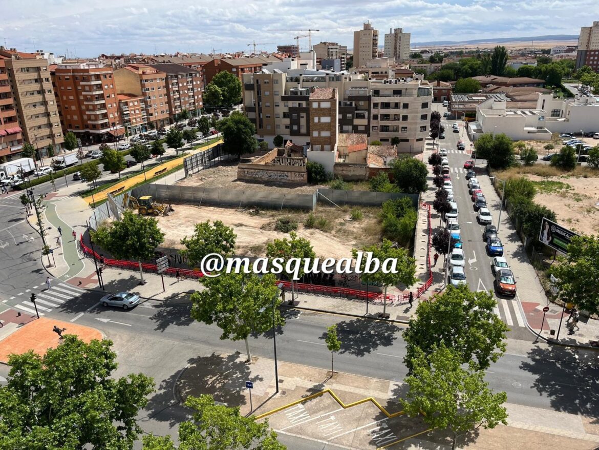 Por fin han comenzado las obras en el solar frente a El Corte Inglés, en la Avenida de España, la ‘esquina de oro’ de la ciudad de Albacete. Los obreros y las máquinas han llegado ya a este terreno donde finalmente se llevará a cabo una promoción de 32 viviendas, que está urbanizando el propietario del terreno.