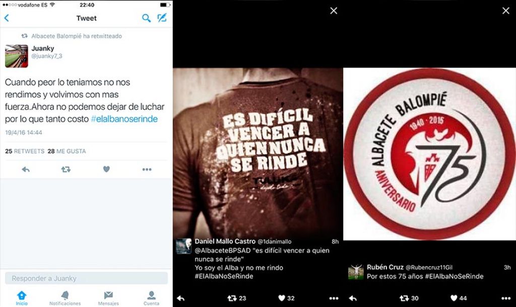 Jugadores como Dani Mallo o Rubén Cruz e integrantes del cuerpo técnico como Juanky se han sumado a la campaña #ElAlbaNoSeRinde iniciada en Twitter, con la que el equipo pide el apoyo de la afición este sábado, para la finalísima contra el Girona. Qué nadie se rinda, que todavía es posible.