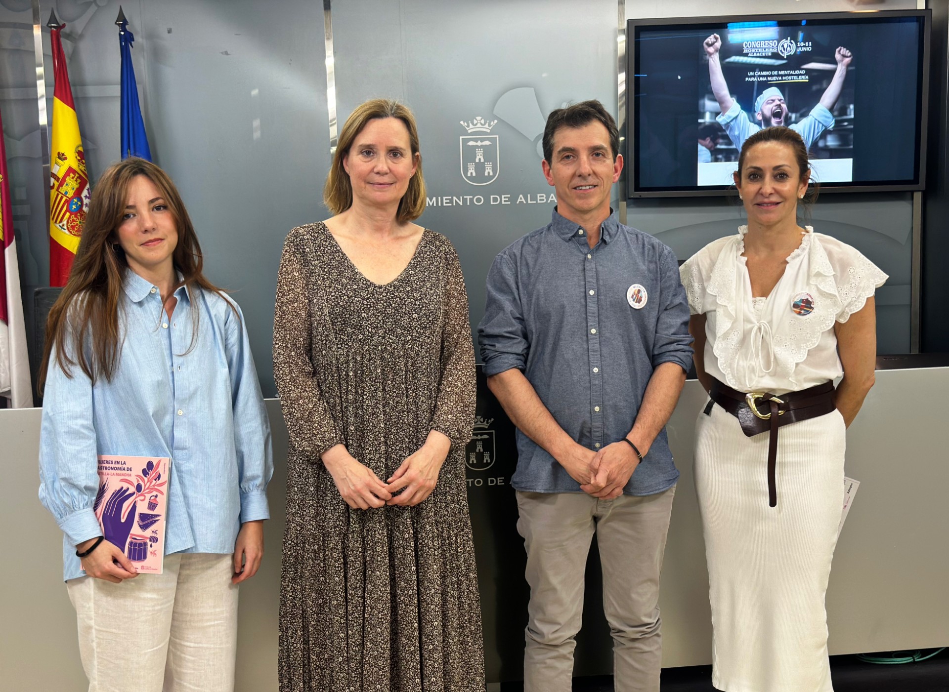 La concejala responsable de Marca Albacete, Rosa González de la Aleja, ha presentado el I Congreso Hostelero, acompañada de la gerente de la Asociación Provincial de Empresarios de Hostelería y Turismo, Begoña Garijo, y el director de márketing del Congreso, Antonio Quesada.