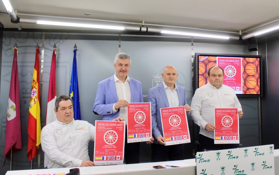 El concejal de Deportes, Francisco Villaescusa, ha presentado el Torneo Internacional de Selecciones de Baloncesto en Silla de Ruedas, que se celebrará en Albacete del 4 al 6 de abril entre el jueves y el sábado próximos. El edil estaba acompañado del presidente de la Federación Española de Deportes de Personas con Discapacidad Física, Enrique Álvarez, así como el vicepresidente de AMIAB, José Carlos Jurado, y el director deportivo del BSR AMIAB, Juan Miguel Cano.