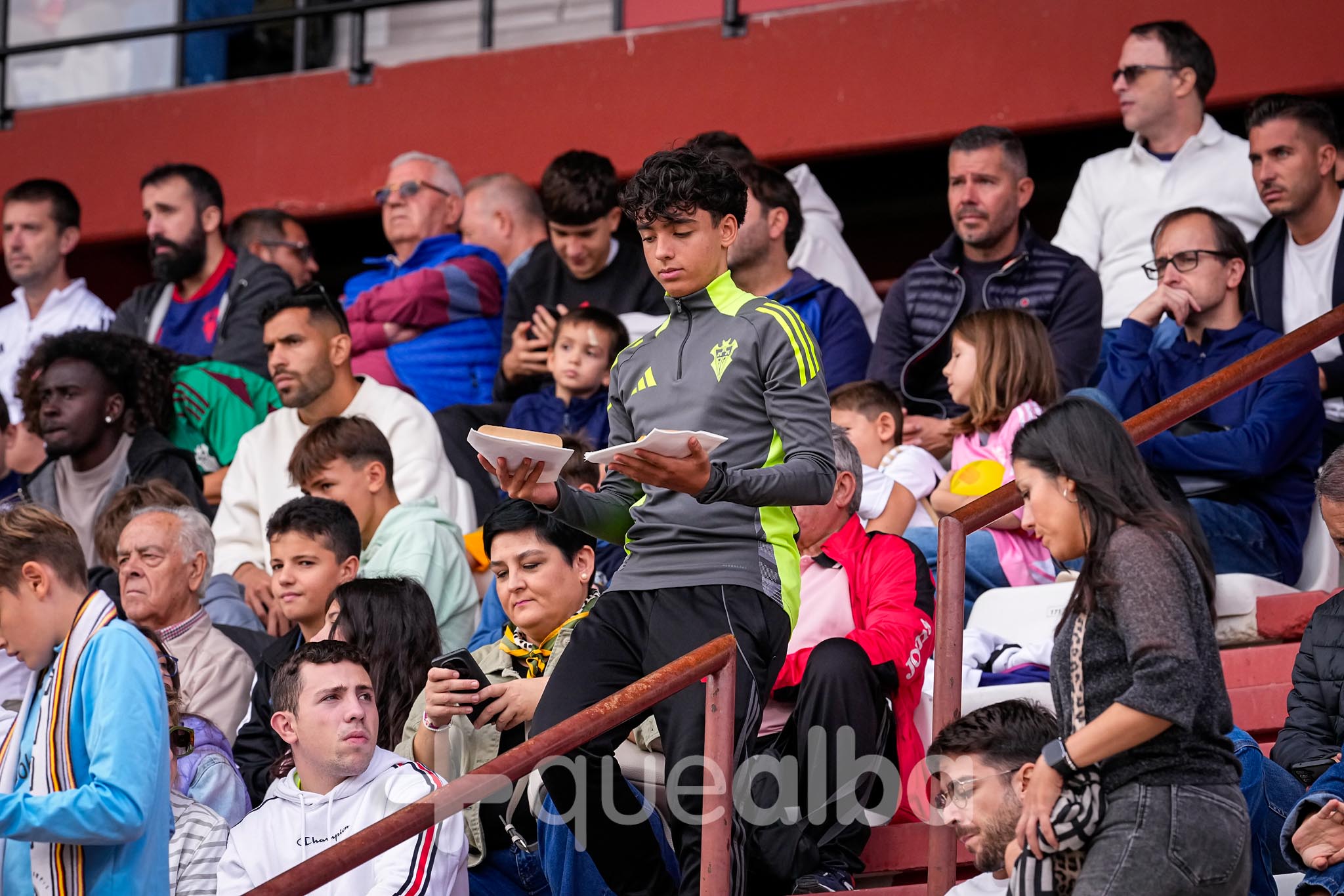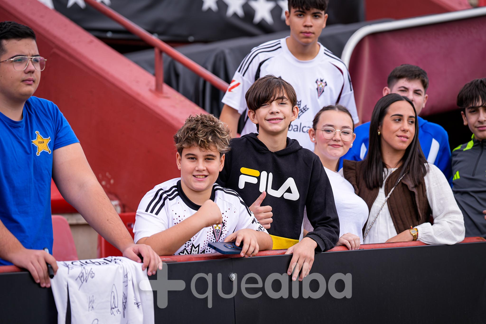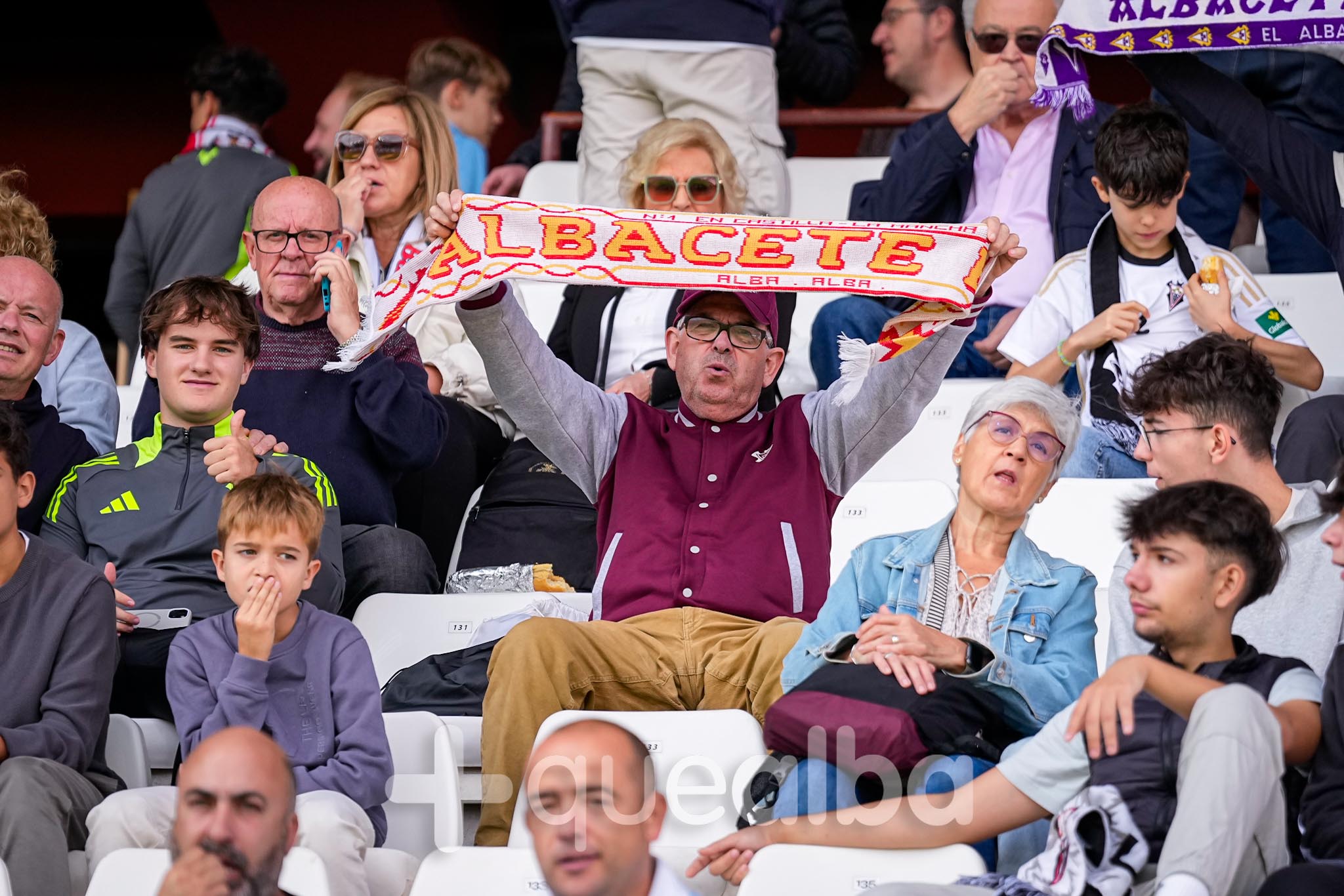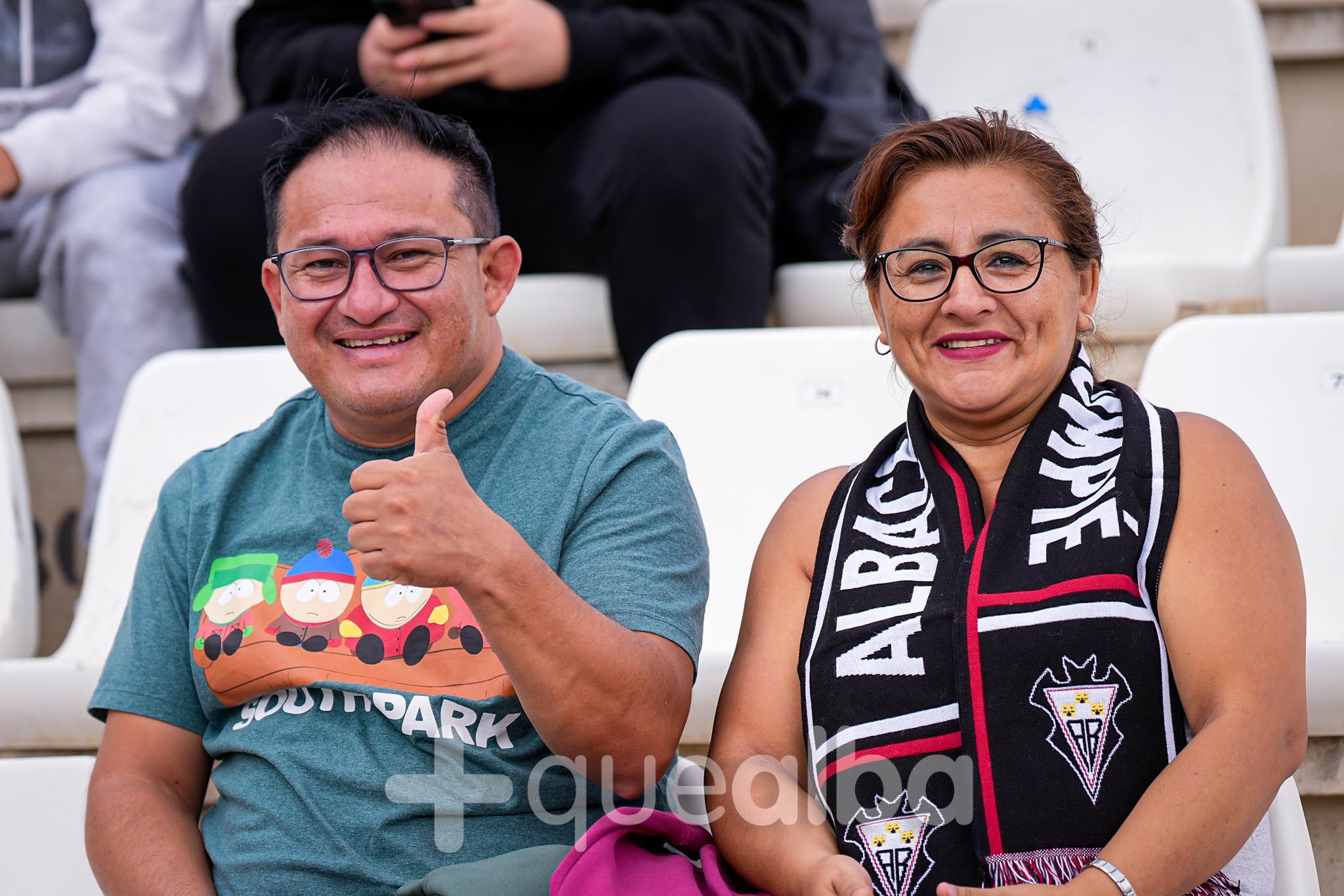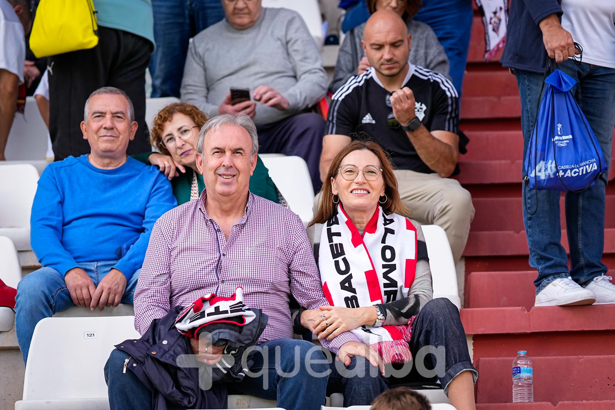 Algo más de 10.600 aficionados se daban cita este domingo, en el Carlos Belmonte, para ver el Albacete Balompié-Ceuta. Una cita en el Día de la Hispanidad que llegaba a la hora de comer.En las gradas veíamos al crack de Juan Carlos Calero, Juanky.
