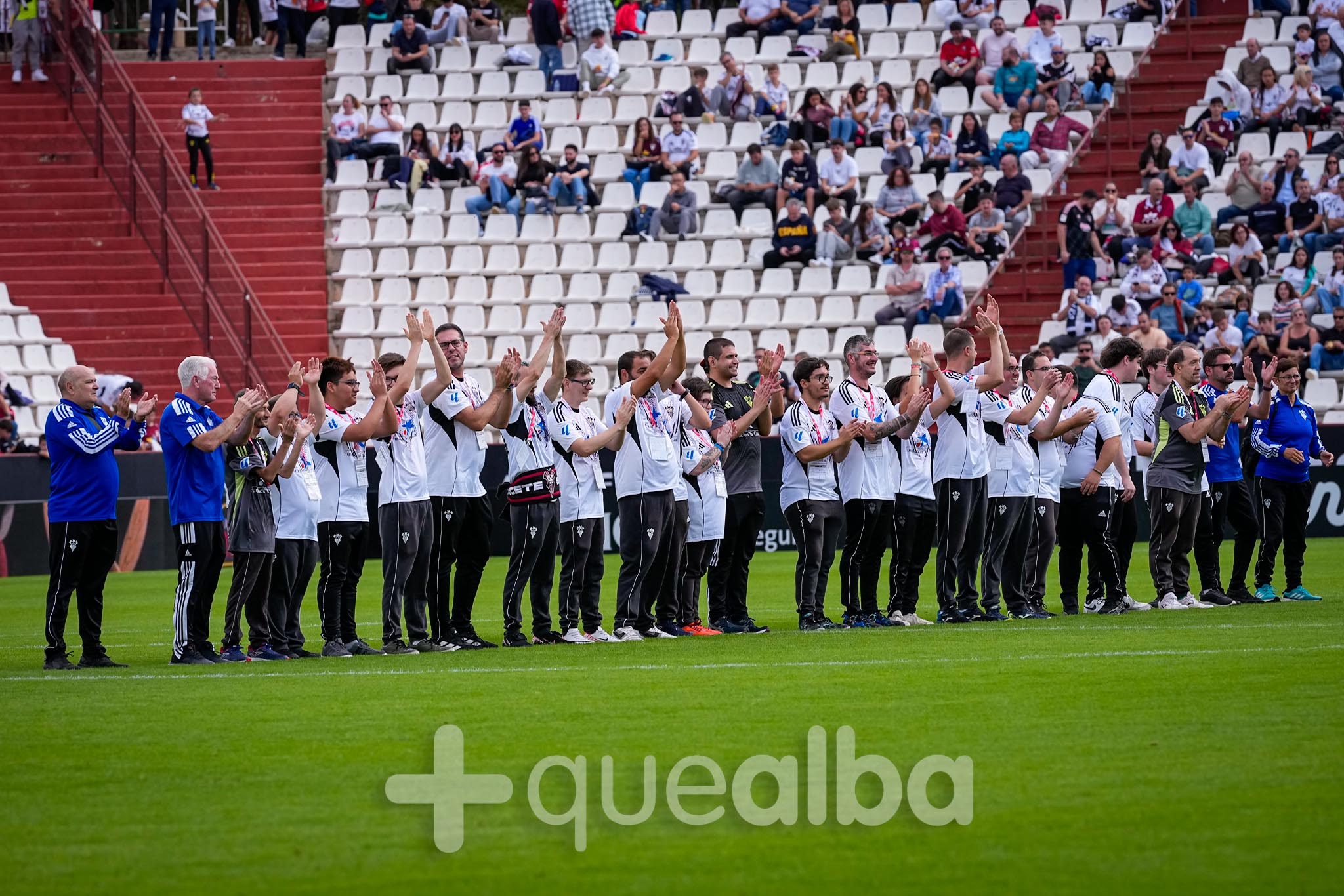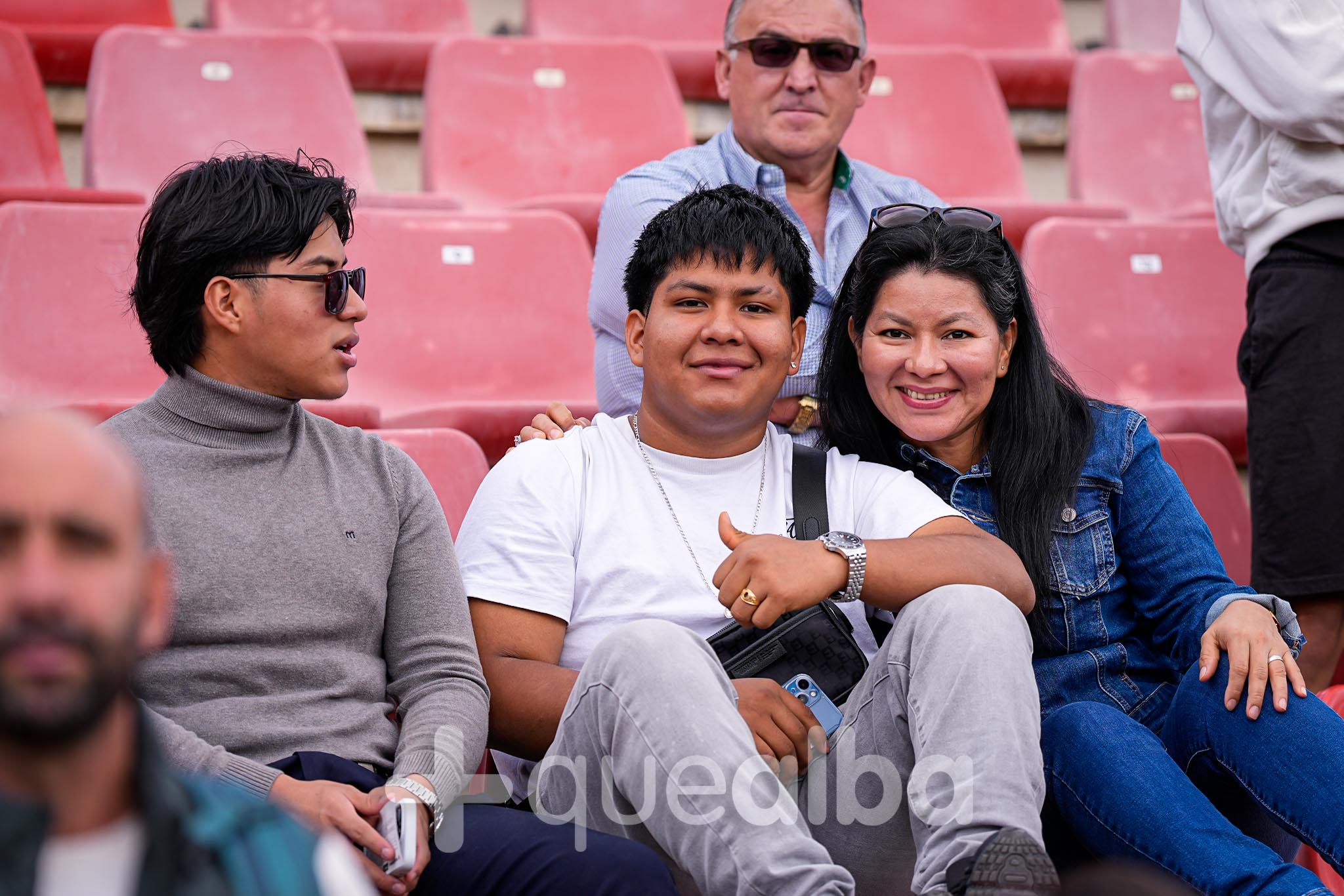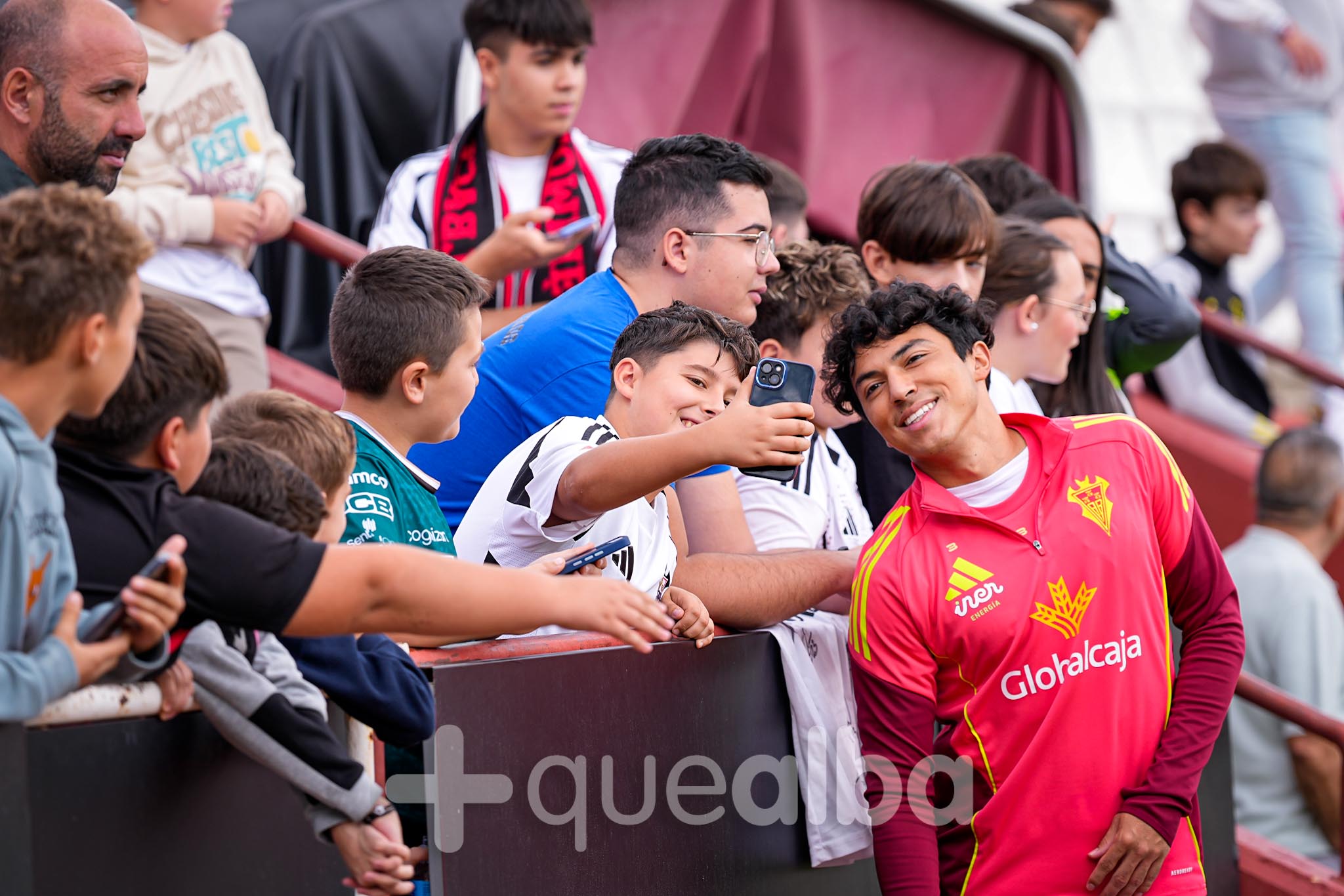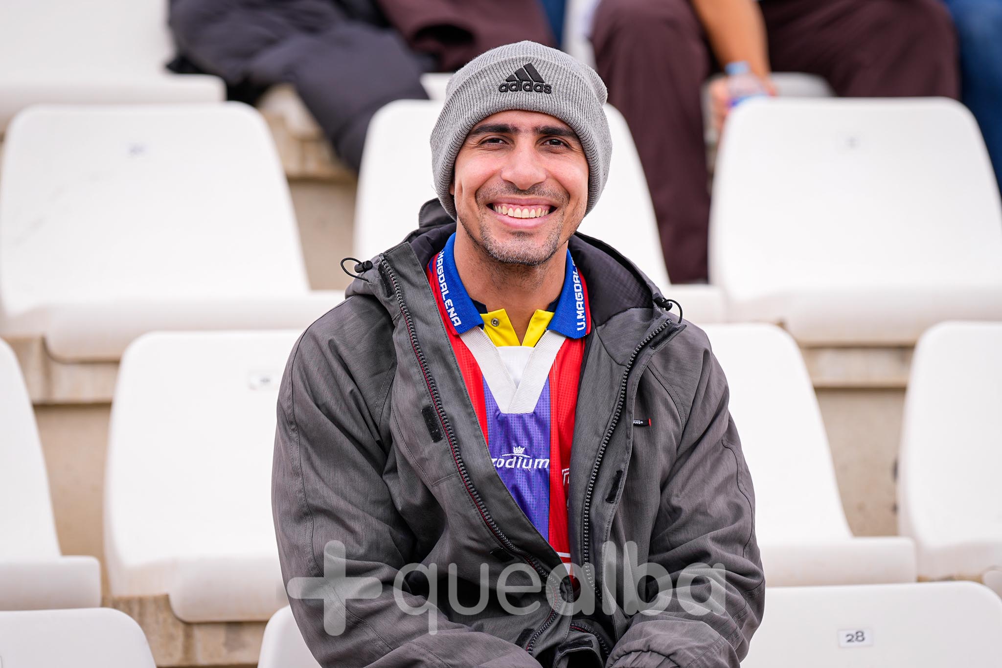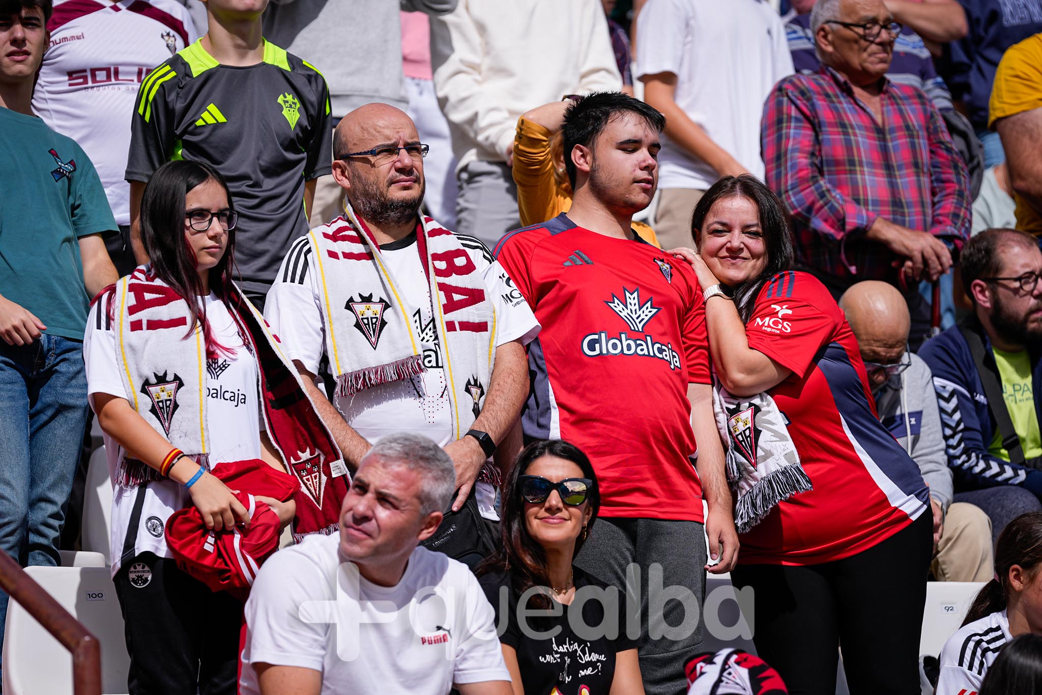 Algo más de 10.600 aficionados se daban cita este domingo, en el Carlos Belmonte, para ver el Albacete Balompié-Ceuta. Una cita en el Día de la Hispanidad que llegaba a la hora de comer.En las gradas veíamos al crack de Juan Carlos Calero, Juanky.
