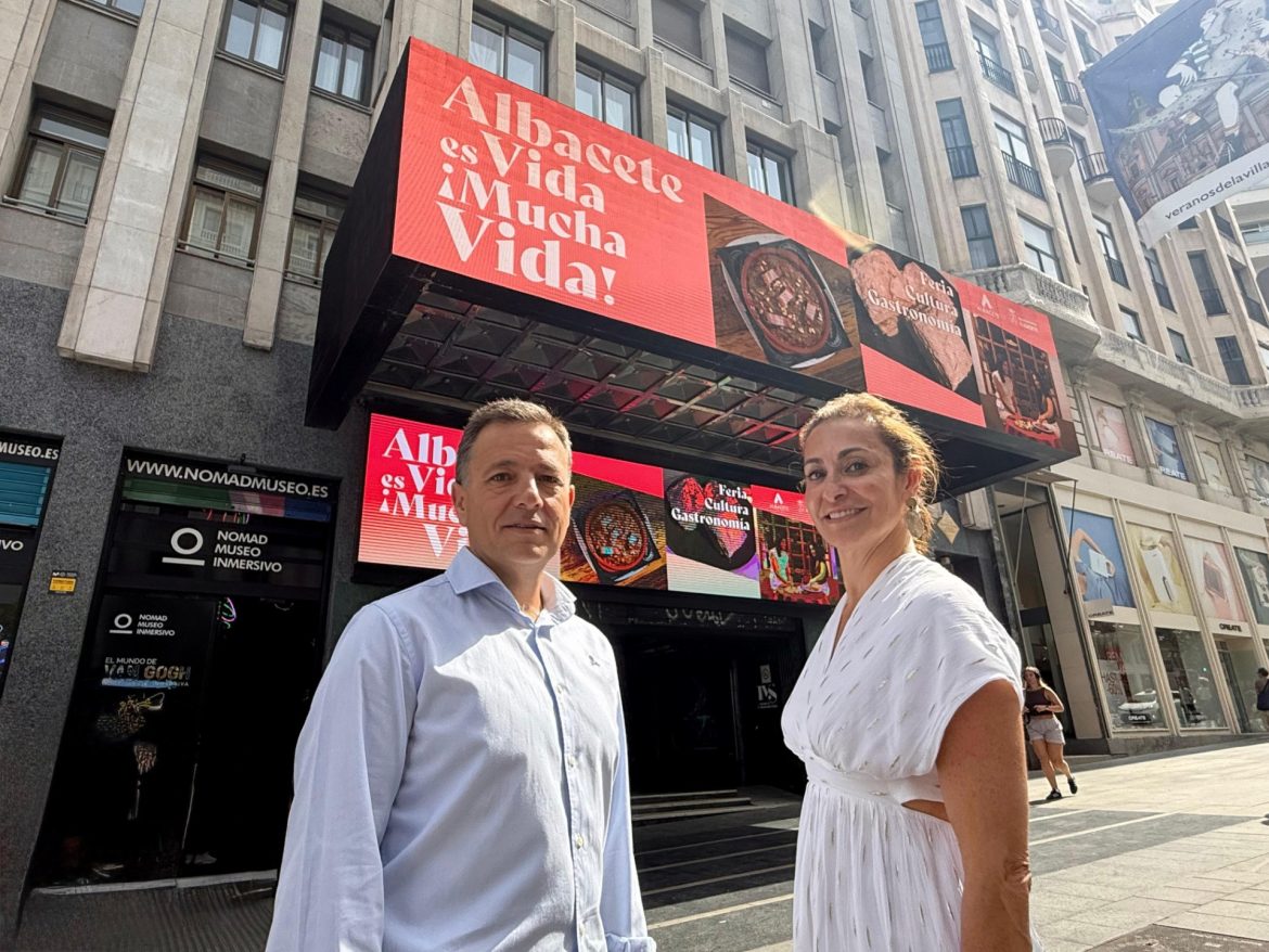 El alcalde Manuel Serrano ha presentado la novedosa campaña de promoción turística de nuestra ciudad impulsada por el Ayuntamiento que ya es una realidad en el centro de Madrid, bajo el lema ‘Albacete es vida, mucha vida’, junto a la concejala de Turismo, Rosa González de la Aleja, asegurando que “no somos tierra de paso, sino un destino en sí mismo por los muchos y variados atractivos turísticos de calidad con los que contamos durante todo el año”.