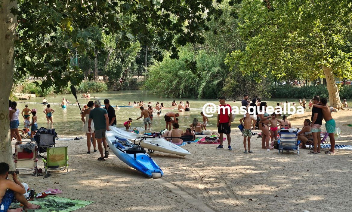 Sábado de intensísimo calor en la provincia de Albacete, donde todas las localidades de las que la Agencia Estatal de Meteorología (AEMET) recoge datos han rozado superado los 40 grados. Así, no es de extrañar que, durante todo el día, la ‘Playeta’ de Alcalá del Júcar pareciera Benidorm.