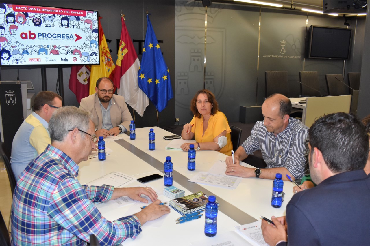 Las sesiones del Pacto por el Desarrollo y el Empleo Albacete Progresa entran en su recta final, con la celebración de la primera reunión de uno de los últimos ejes que quedaban por reunirse, el Eje 4, Desarrollo sostenible, transición energética y mejora de la movilidad. Hacia una ciudad inclusiva, coordinado por el concejal de Sostenibilidad y Cambio Climático, Julián Ramón, y por el concejal de Educación y Movilidad, José González. A esta reunión, celebrada en el Ayuntamiento de Albacete, asistieron Daniel Sánchez Moreno, en representación de la Confederación de Empresarios (FEDA); Antonio Marín, por parte de UGT y Paqui Jiménez Gómez, en nombre de Comisiones Obreras.