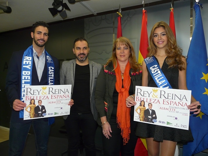 La portavoz del gobierno en el Ayuntamiento de Albacete, Llanos Navarro, acompañada por el director del certamen Rey&Reina Belleza de España Antonio Marhuenda y los dos representantes de Castilla la Mancha en el certamen, los albaceteños Félix Fuentes y Elena Delicado, han presentado en la mañana de hoy el Certamen Rey&Reina Bellezas de España que se celebrará el próximo día 10 de diciembre en el Teatro Circo de Albacete a partir de las 21:00 horas con invitación gratuita.