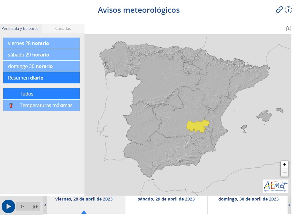 El episodio de calor extremo que ha sacudido al país estos días empieza a desvanecerse y este viernes la alerta amarilla, por las altas temperaturas, de la Agencia Estatal de Meteorología se reduce ya a la provincia de Albacete y, en concreto, a la zona de La Mancha albaceteña.
