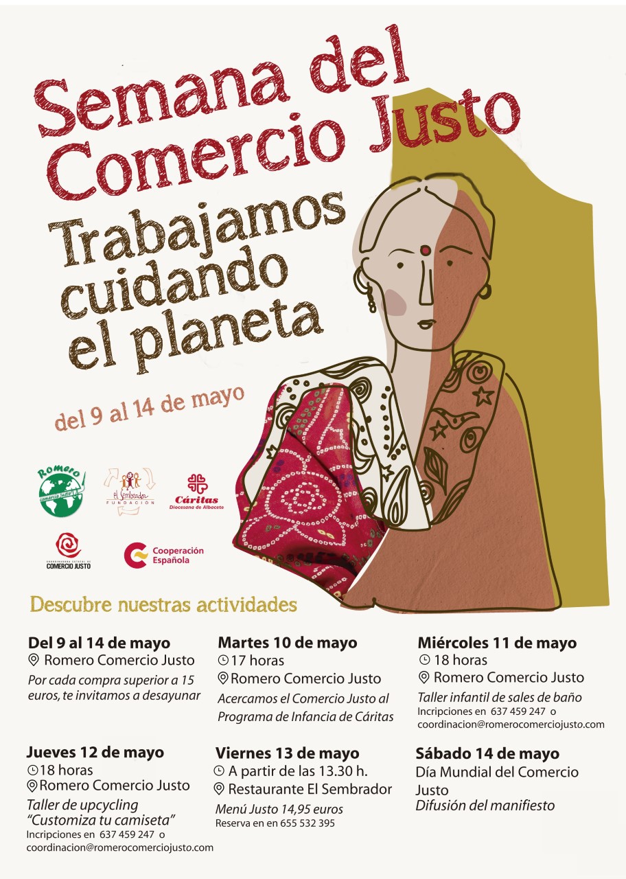 Bajo el lema “Trabajamos cuidando el planeta”, Cáritas Diocesana de Albacete y Romero Comercio Justo retoman las actividades para celebrar la Semana del Comercio Justo, del 9 al 14 de mayo. Lo hacen con el objetivo de sensibilizar sobre la importancia de utilizar herramientas como el Comercio Justo para apostar por otro modelo económico e incentivar el consumo de productos elaborados de manera ética, responsable y sostenible.