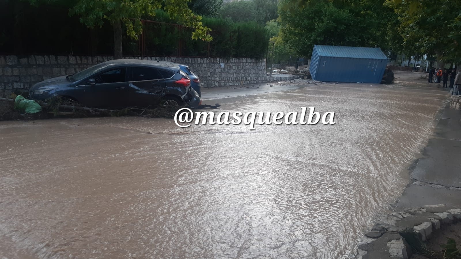 Anochece en la localidad y la imagen de los vehículos arrastrados, incluso un contenedor de obra de gran tamaño, sigue siendo desoladora. Entre todos se repite una idea común, menos mal que han sido sólo daños materiales.