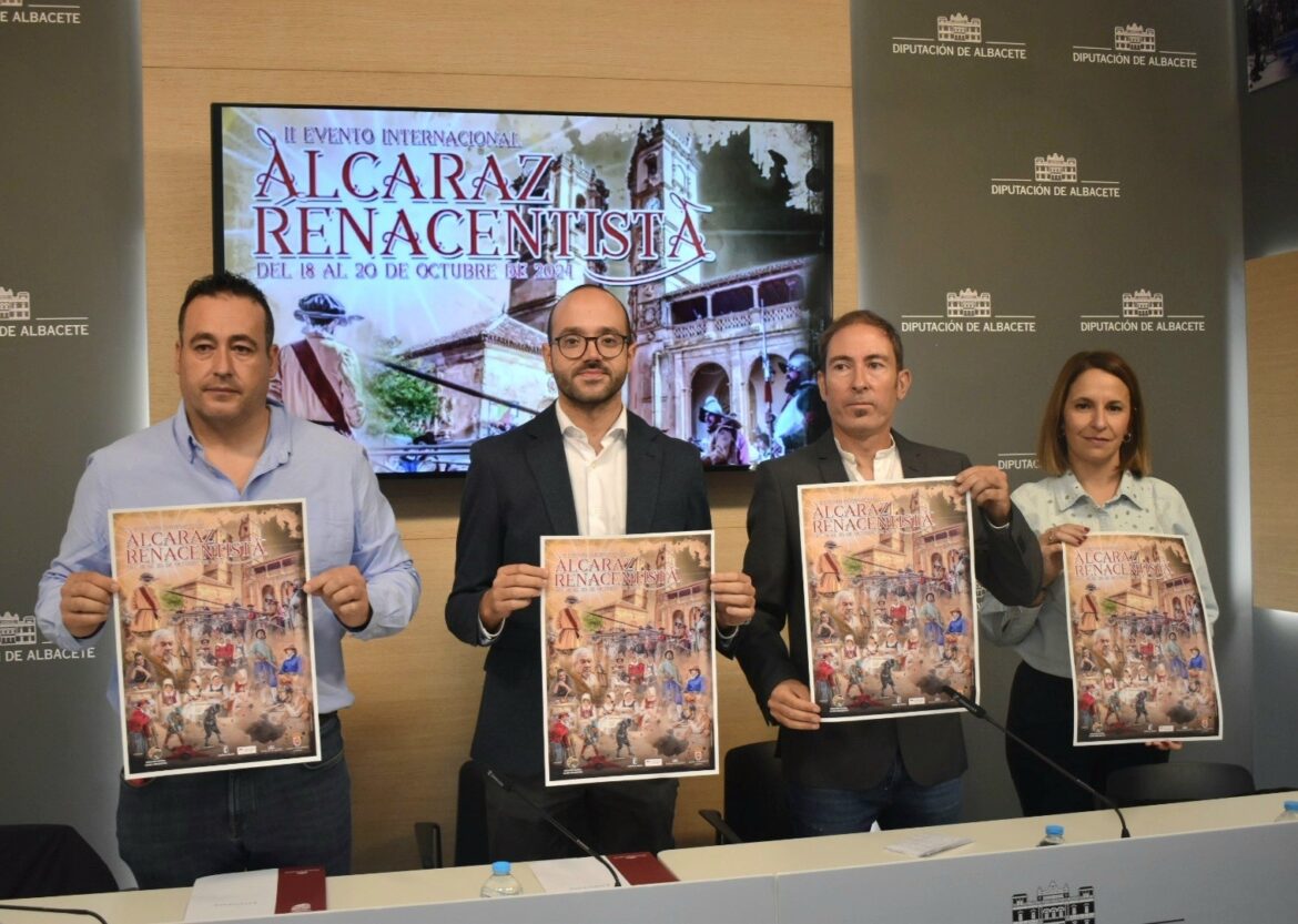 Así lo han avanzado el vicepresidente de la Diputación de Albacete, Fran Valera; el alcalde de la localidad anfitriona, Pedro Jesús Valero, junto a la teniente de alcalde (y diputada del Equipo de Gobierno provincial), Yolanda Ballesteros; y Enrique González, presidente de la asociación organizadora, Alcaraz Renacentista. Todos han coincidido en apuntar la idoneidad de estas jornadas de recreación, que se convertirán en una experiencia única, trascendiendo el ámbito local para integrar al conjunto de la Sierra de Alcaraz y Campo de Montiel.