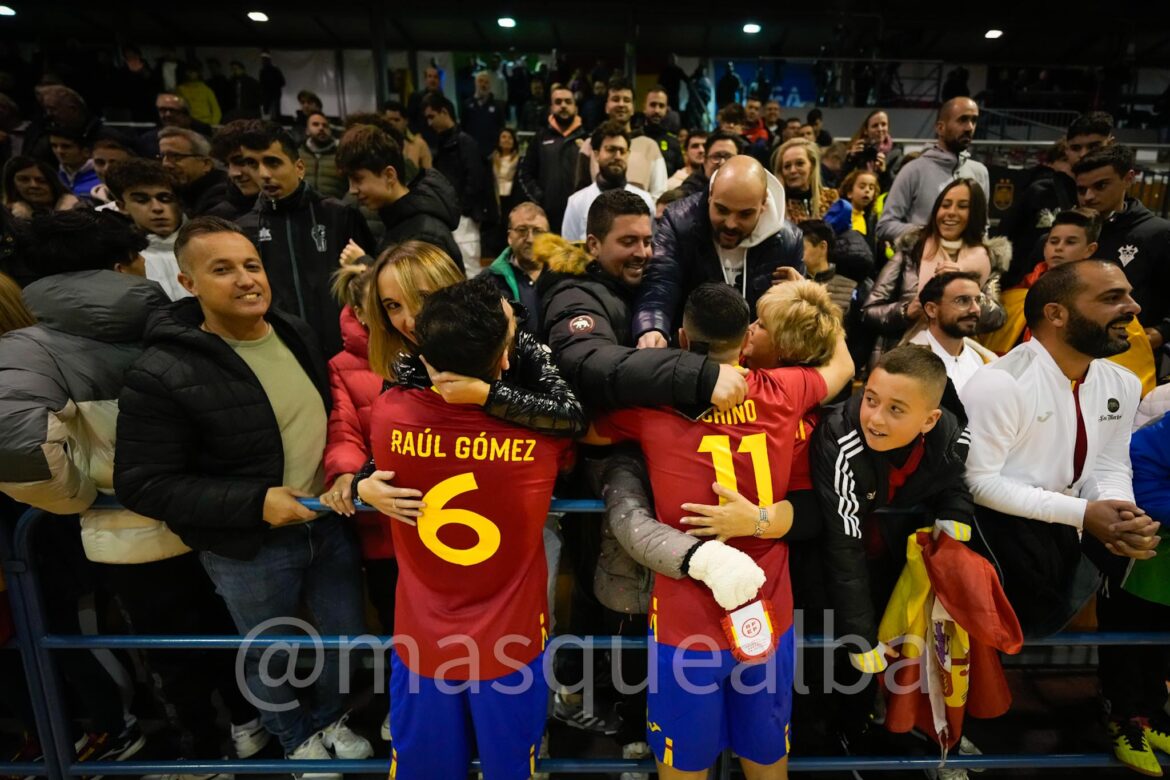Entre los protagonistas tres albaceteños; los jugadores Raúl Gómez y Chino y el doctor Riaza. Gran presencia de familiares y amigos de todos los jugadores en la grada, pero muy especialmente de los protagonistas albaceteños en el equipo que ha logrado la clasificación para el Mundial.