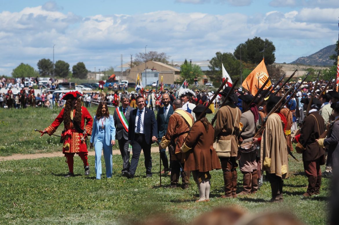 Tras el izado de banderas, ya en el campo de batalla, el presidente Cabañero ha participado junto a la alcaldesa de Almansa y el alcalde de Volvera en una ofrenda floral a los caídos ante el monolito. A continuación, han pasado revista a las tropas y se han sumado como espectadores a la recreación histórica, que este año ha incorporado importantes novedades, incluyendo un cañón de 1793 procedente del Museo de la Real Fábrica de Artillería de Cantabria, cuyas salvas han sido en recuerdo a las víctimas de la DANA.