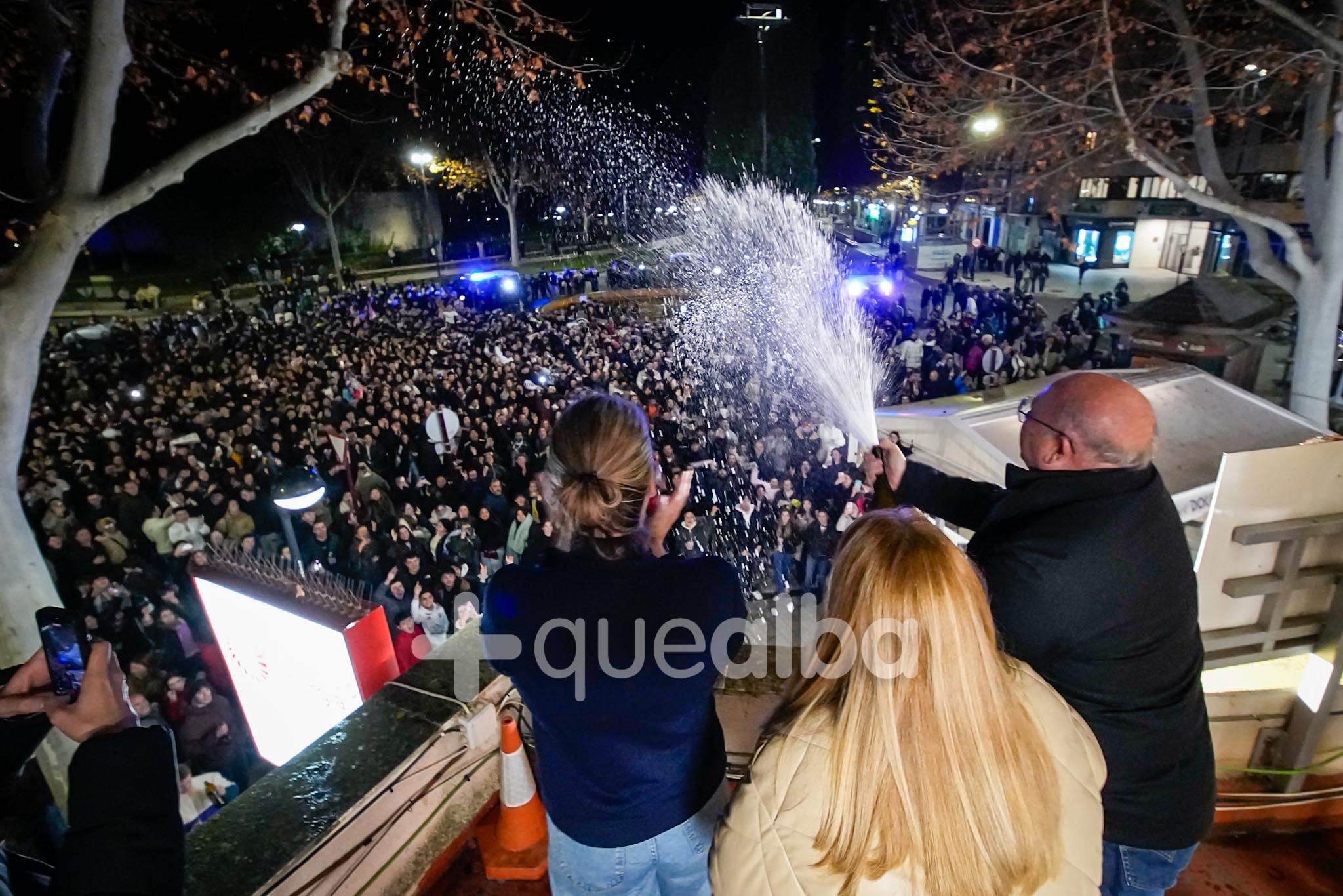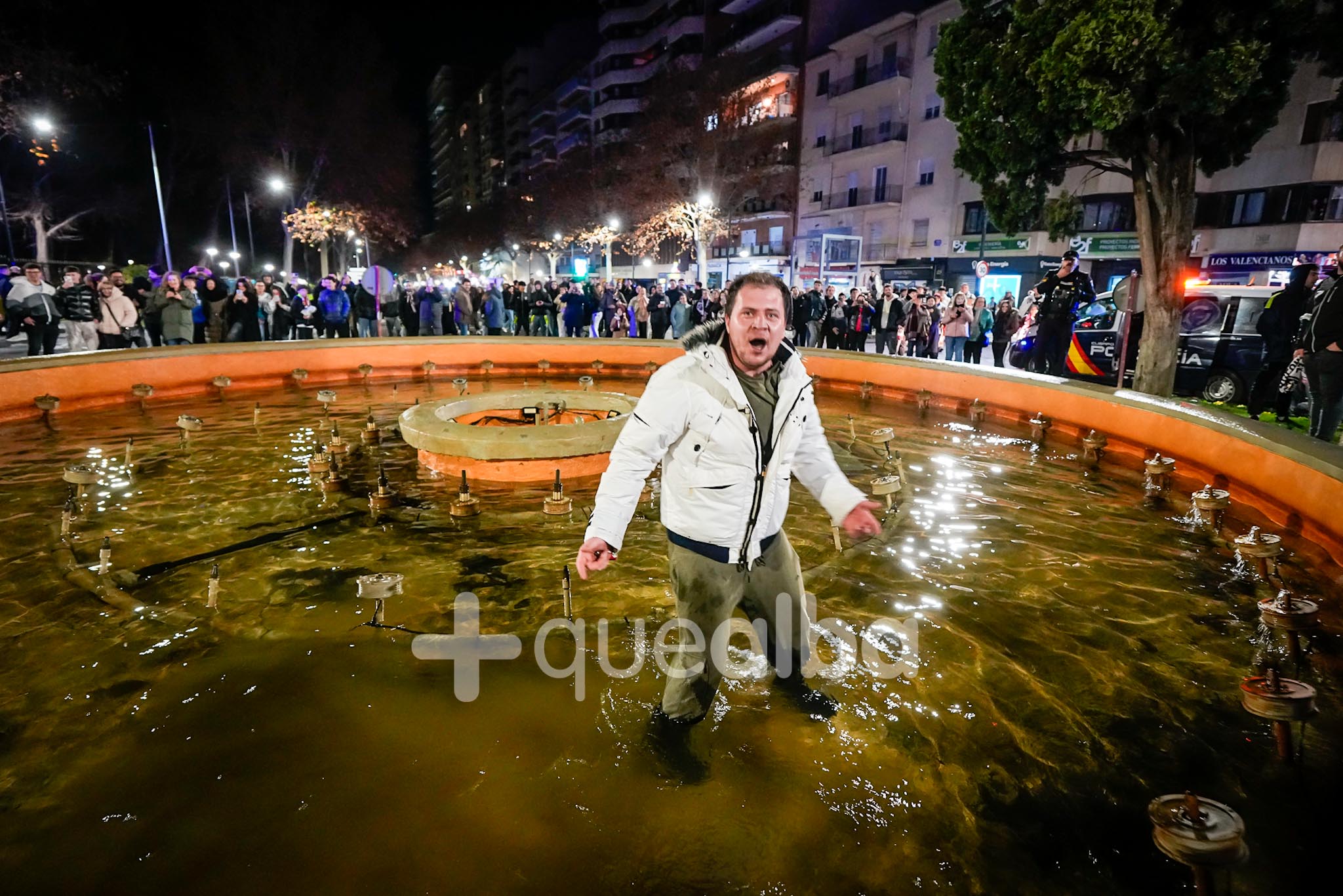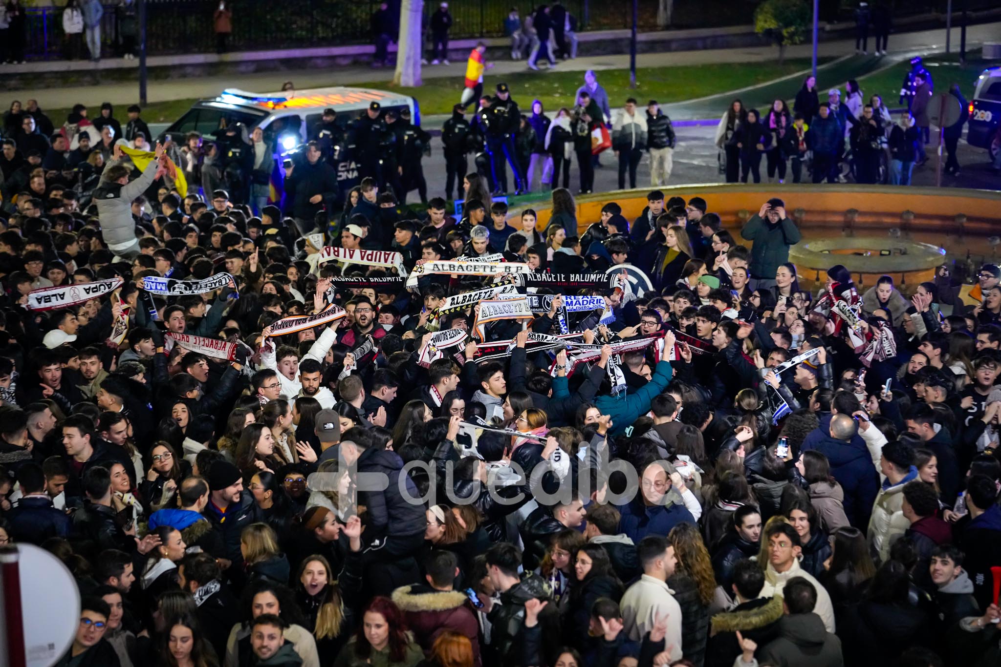 Lugar emblemático para las celebraciones del Albacete Balompié, eso sí hoy sin agua para prevenir, aquí se daban cita esta medianoche numerosos aficionados que quieren festejar un pase histórico. No ha faltado quien se ha dado un ‘baño’ aunque el agua cubriera poco, muy poco.