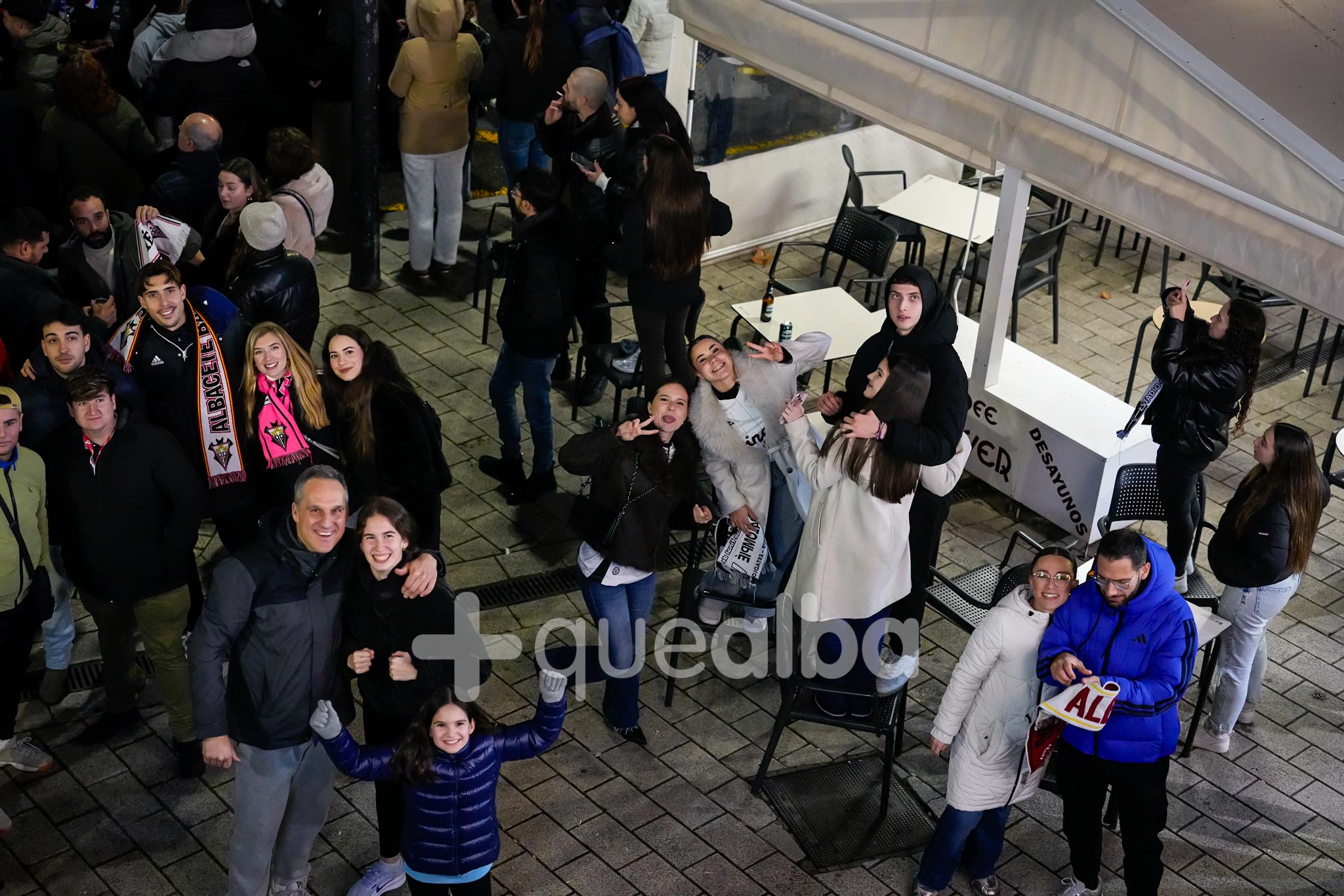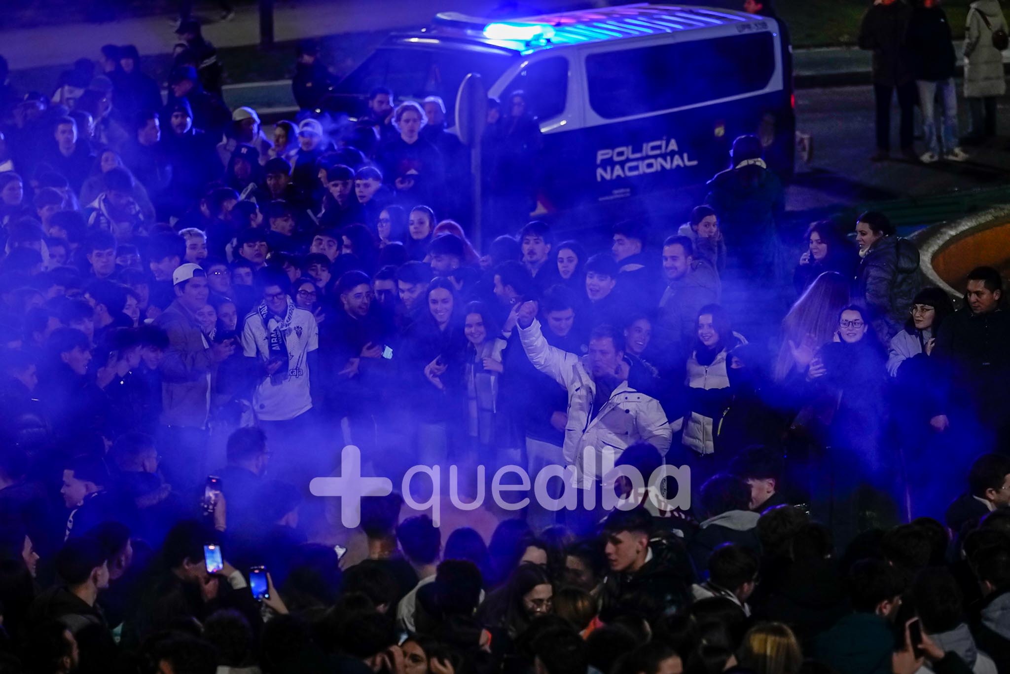 Los aficionados han aguardado en la Fuente esperando la llegada del autobús del Albacete Balompié, si bien finalmente no se ha producido, por consejo de la Policía para garantizar la seguridad en la zona en todo momento.