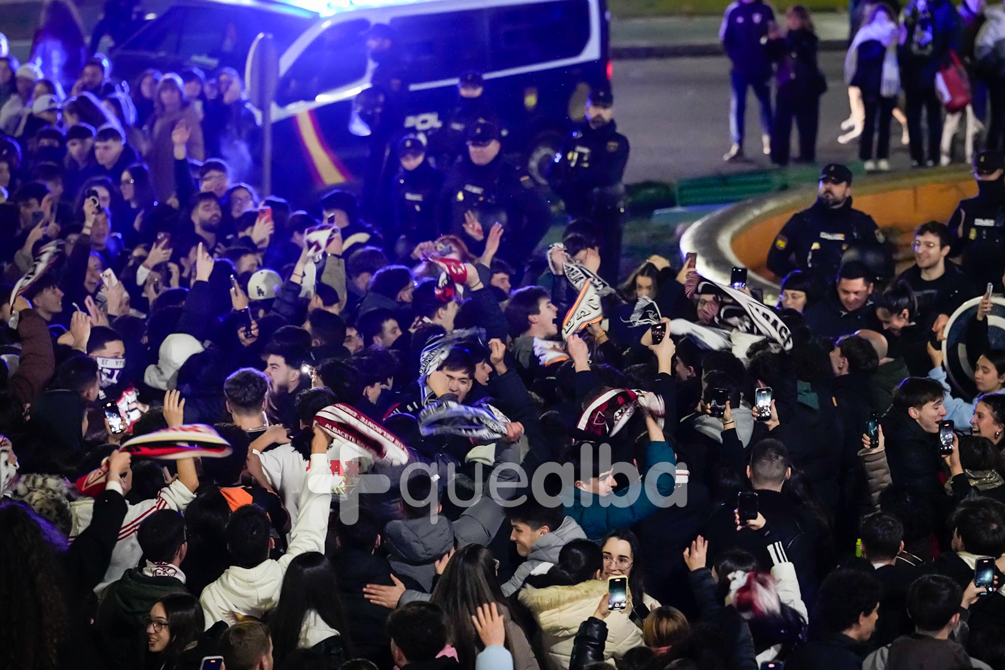 El Albacete Balompié hacía historia al derrotar al Real Madrid en los octavos de final de la Copa del Rey y la afición estallaba de alegría. El Belmonte, lleno hasta la bandera, fue una auténtica fiesta y la celebración se trasladaba después a la Fuente, en la Avenida de España.