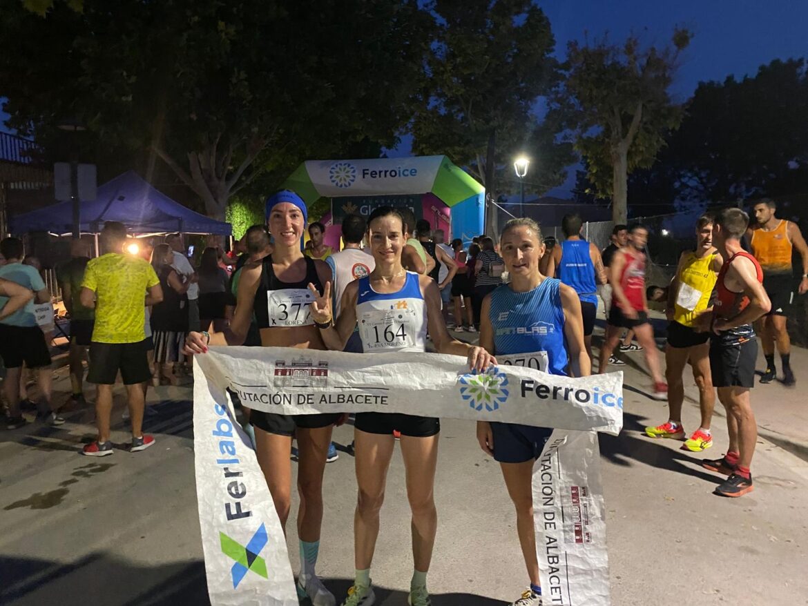 En la categoría femenina, Eva Moreno Sánchez sumó su primera victoria de la temporada. Y lo hizo rebajando el tiempo que había en El Salobral, marcando un crono de 20’32’’ en meta, once segundos mejor que los 20’43’’ con los que Violeta Bautista ganó el año pasado. Eva Moreno se convierte así en la décimo cuarta atleta femenina en lograr una victoria en esta edición del Circuito Provincial, un listado que lidera Eva Valera con 11 triunfos en su haber. Lorena Martínez y Sandra Ruiz, las dos únicas corredoras, junto con Eva, capaces de bajar de los 21 minutos, completaron el pódium de la prueba.