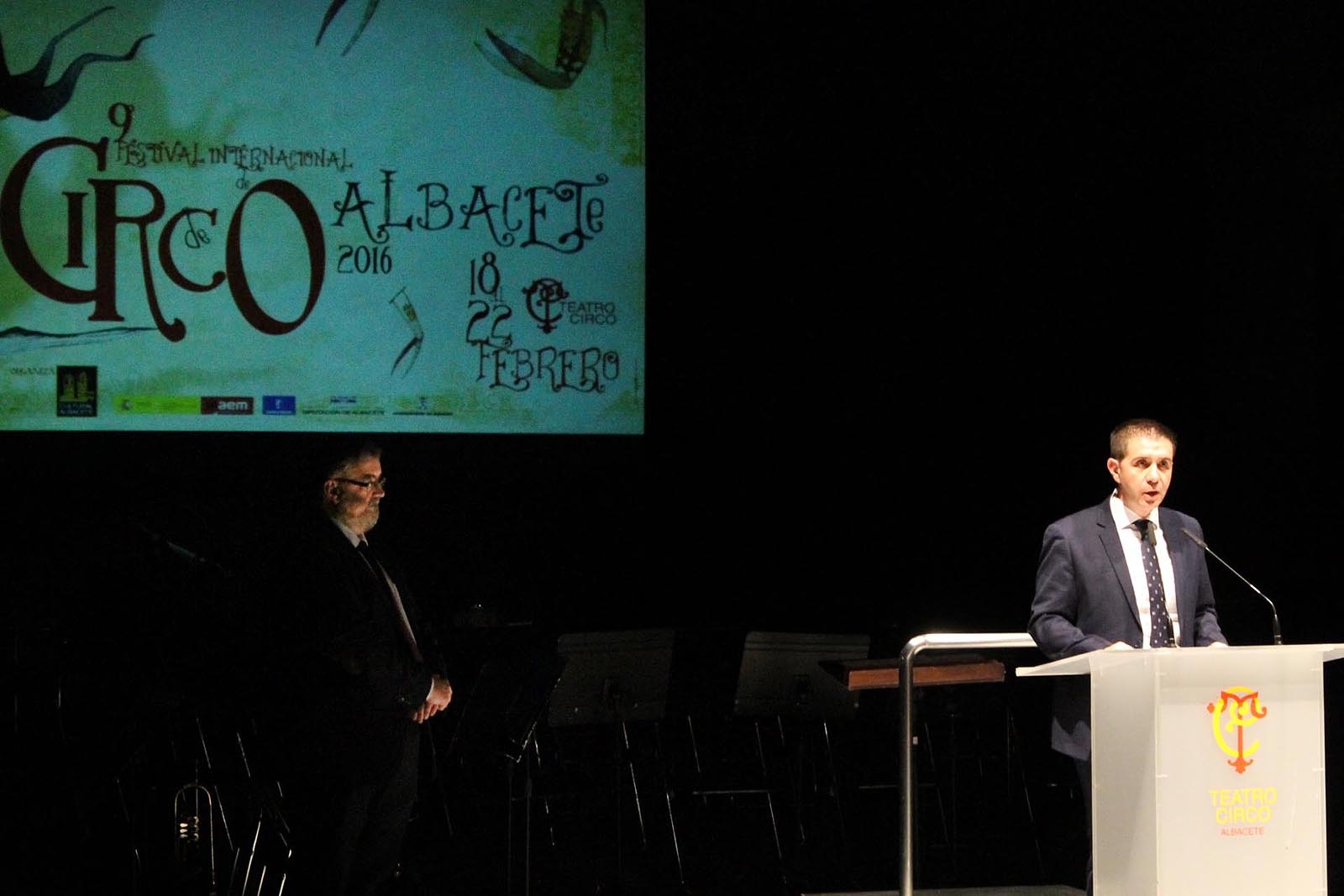 Cabañero finalizó su intervención deseando suerte a todos los aspirantes a los dos bronces, las dos platas y el oro que otorga el Festival, y agradeció a los artistas su presencia en Albacete «porque nos regala un año más este lujo que facilita que el podamos abrir el telón para que Albacete continúe siendo la cuna del circo en este país».