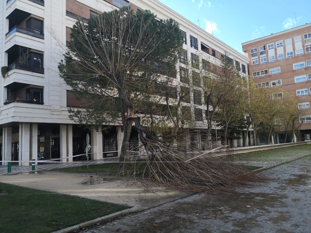 Operarios municipales han trabajado este mediodía para retirar la rama caída de un árbol junto a la Fábrica de Harinas y asegurar el resto de ramas.