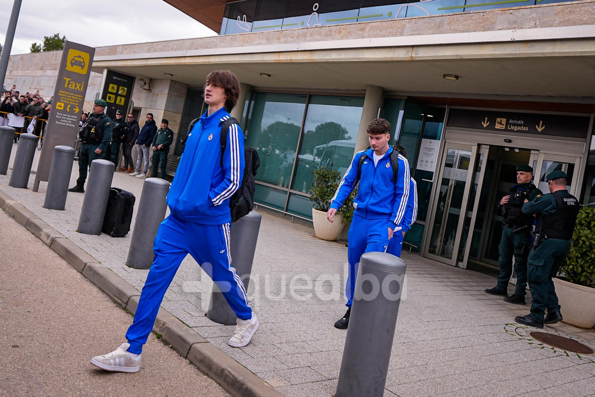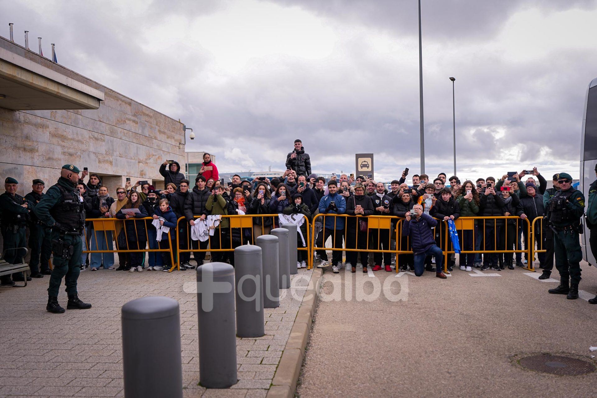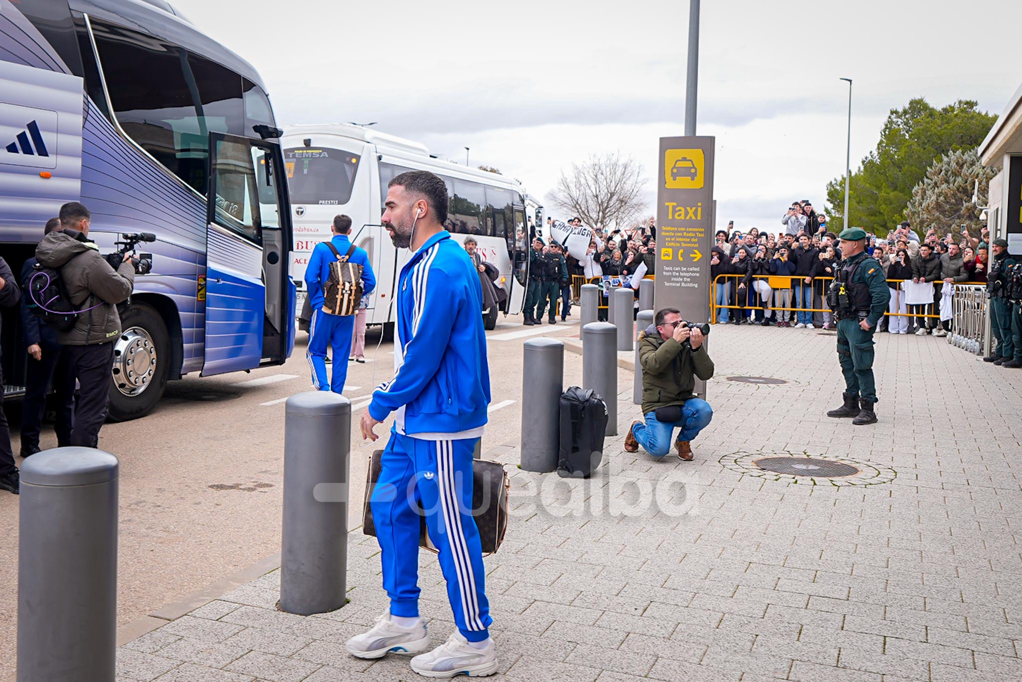 Cientos de aficionados esperaban al Real Madrid en su llegada al aeropuerto de Albacete, para el partido de octavos de Copa del Rey de esta noche, en el Carlos Belmonte.