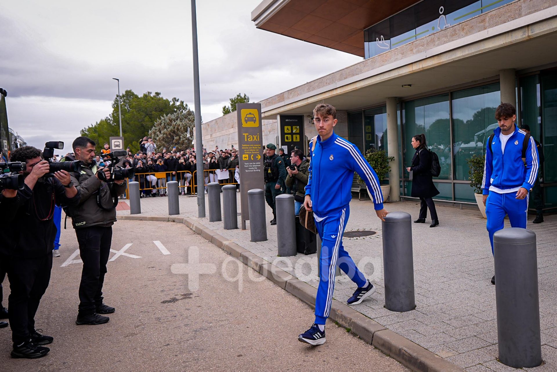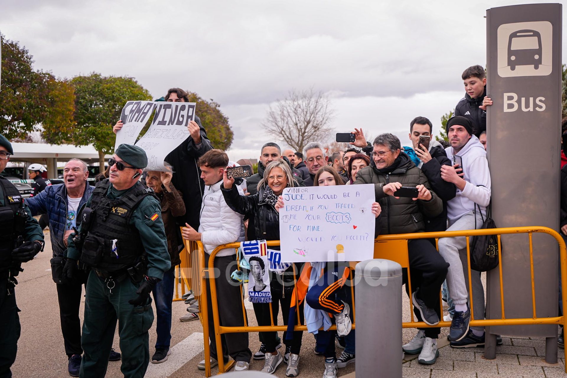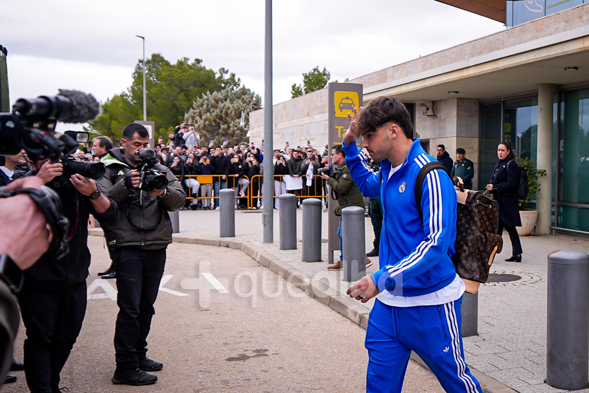 Cientos de aficionados esperaban al Real Madrid en su llegada al aeropuerto de Albacete, para el partido de octavos de Copa del Rey de esta noche, en el Carlos Belmonte.
