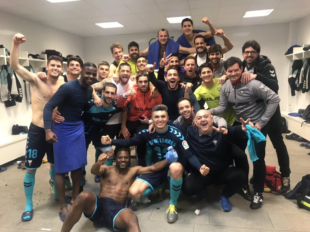 El vestuario del Albacete Balompié es una fiesta tras la espectacular remontada en Córdoba donde han ganado por 1-3. Esta es la imagen de la fiesta en el vestuario que ha publicado el Alba en su cuenta de Twitter.