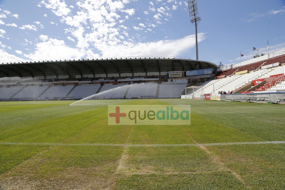 El Carlos Belmonte tiene este aspecto para el partido de la tarde de Feria de este domingo, contra el Llagostera, después de que la semana pasada se celebrara aquí el multitudinario concierto de Pablo Alborán y Alejandro Sanz, pasado por agua por cierto.