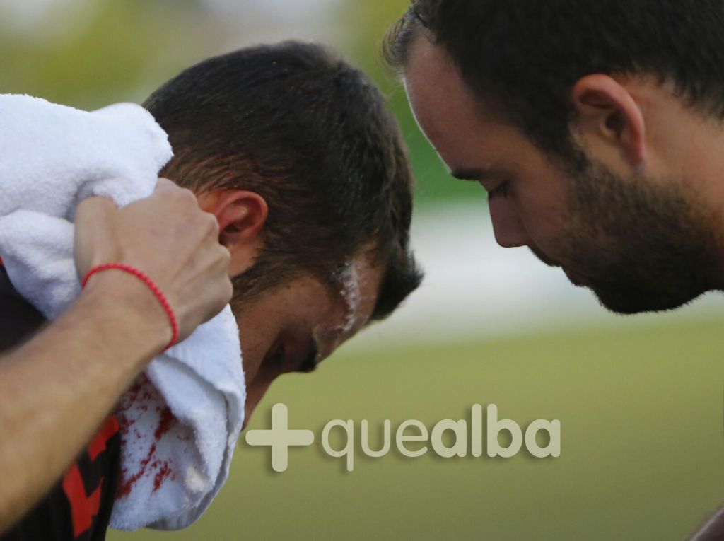 Ha sido al filo del descanso y ha vuelto al campo con gorro, tras ser atendido, si bien tras el paso por vestuarios ha sido sustituido y no ha vuelto al terreno de juego.