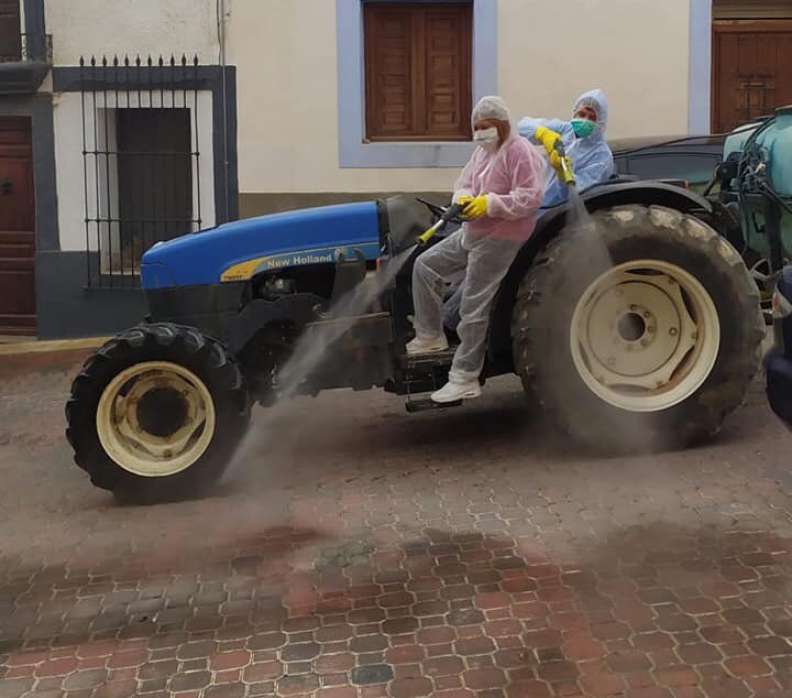 Paco Fernández, lector y amigo de MasqueAlba, nos hace llegar estas imágenes del alcalde de Férez, Francis, y su teniente alcalde, Alicia, fumigando esta mañnaa. “No tienen sueldo y en pequeños pueblos de la España Vaciada se lucha contra el Covid 19 con las armas que tienen”, destacaba.