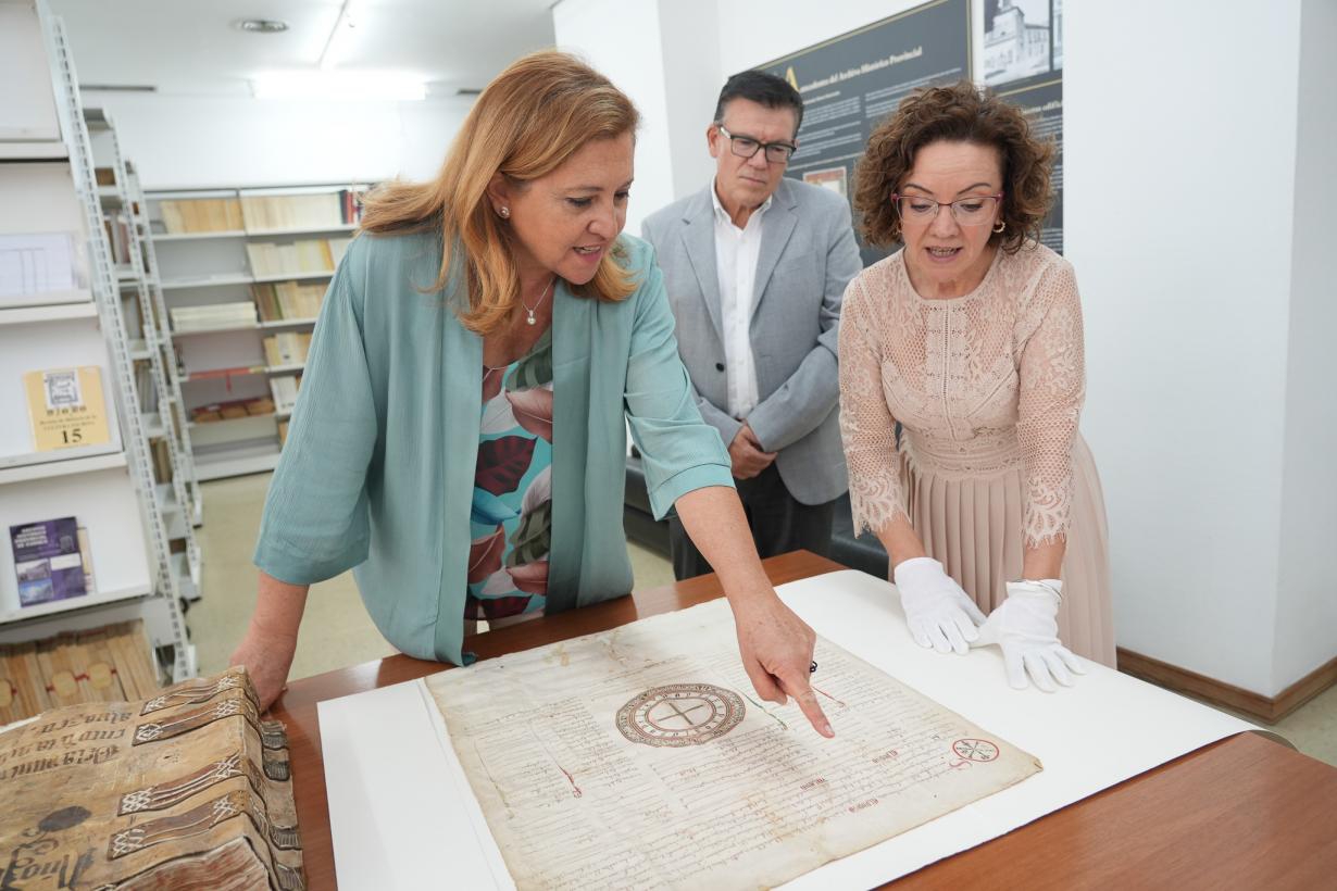 Durante la visita, la consejera ha podido contemplar un pergamino, fechado en 1262, en el que Alfonso X concede a los pobladores de Almansa el fuero y las franquezas que disfrutaba Requena; un libro de actas que recoge Acuerdos Municipales entre 1559 y 1606; y el privilegio de villazgo de Ayna, de 1565.