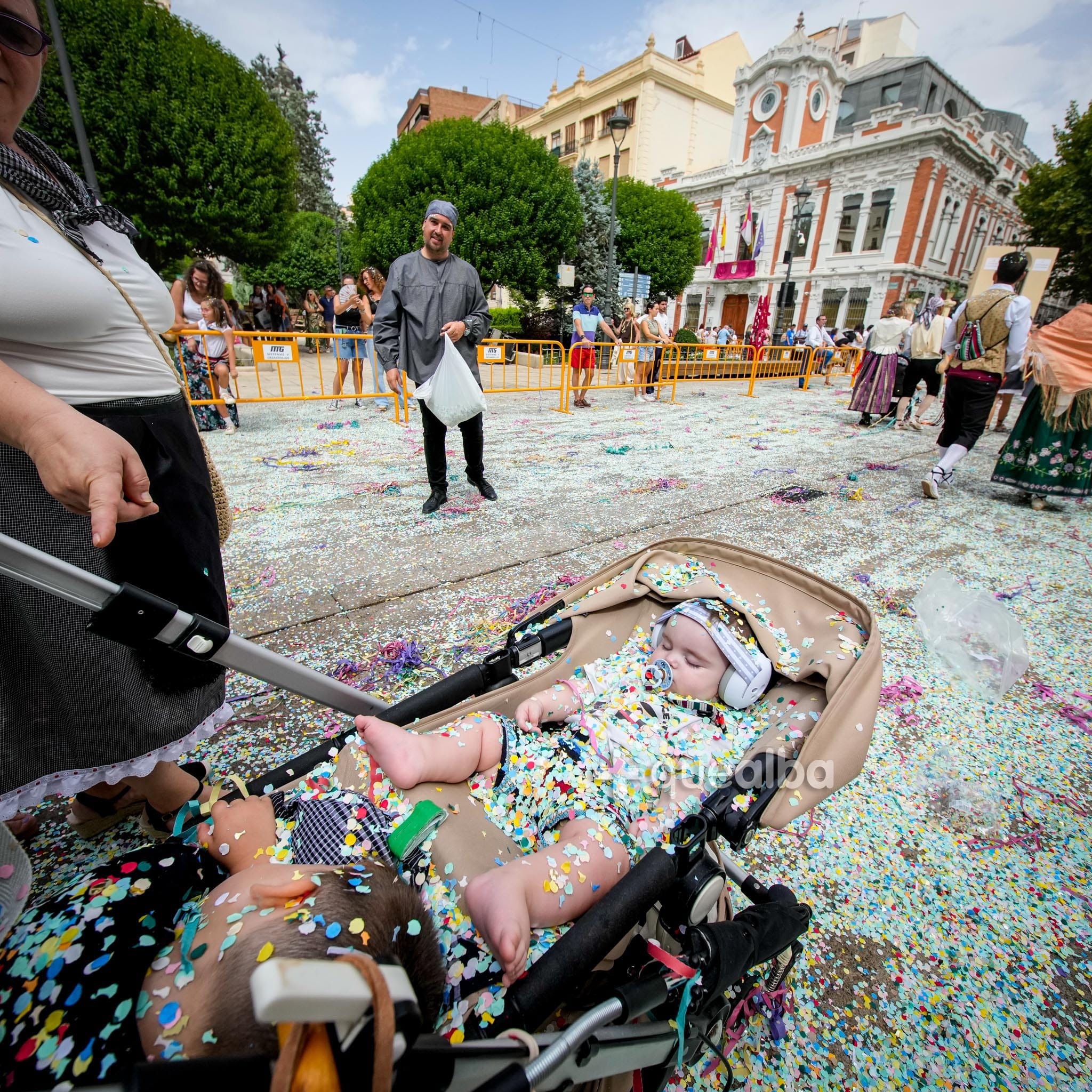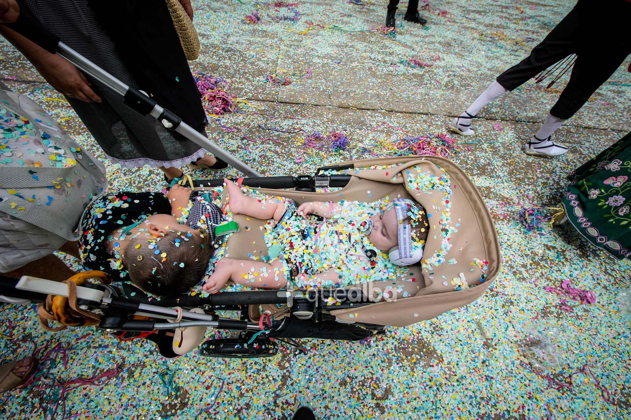 Entrañable sueño el que llevaban estos dos pequeños en un carro, este lunes de fiesta en Albacete, durante la Batalla de Flores.
