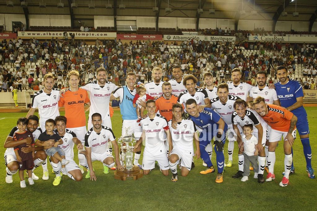 El Albacete Balompié ha ganado el retomado trofeo Ciudad de Albacete, que ha ganado al Getafe, en el Carlos Belmonte. Así posaba el equipo con el trofeo.