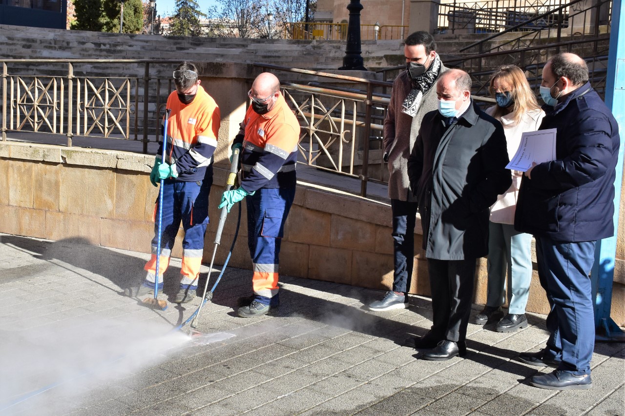 Por su parte, Julián Ramón, que ha entrado a detallar las mejoras introducidas, empezando por el incremento del servicio de limpieza intensiva de manchas, que se lleva a cabo por brigadas que trabajan con equipos de agua a presión. “Hace un par de años, hicimos una campaña y obtuvimos muy buenos resultados, pudimos ver que esas manchas que no se limpian con el barrido habitual, eran eliminadas y hemos considerado necesario contar con este servicio de forma permanente y en toda la ciudad”, ha explicado el concejal.