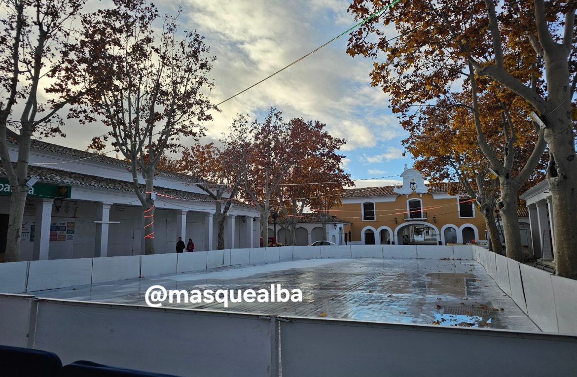 Todo listo ya en el Recinto Ferial de Albacete para recibir esta tarde a quienes deseen patinar en su pista de hielo o tomar algo en los puestos habilitados. Bajo la Capilla de la Virgen se encuentra la pista de hielo y en el rabo de la sartén la oferta gastronómica.