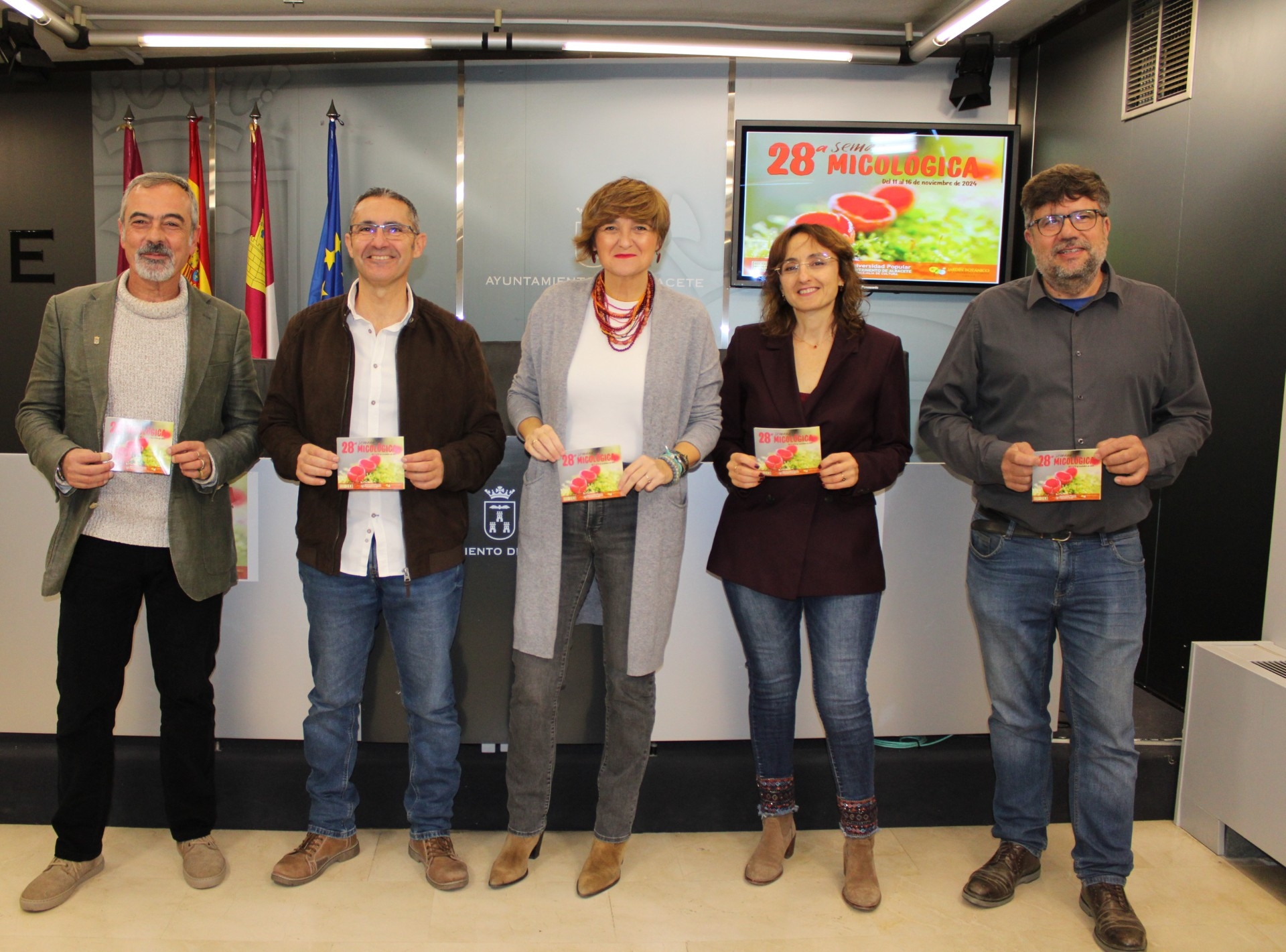 La concejala de Cultura, Elena Serrallé, ha animado a los ciudadanos a disfrutar del 11 al 16 de noviembre de los muchos atractivos que ofrece la 28º Semana Micológica de Albacete durante la rueda de prensa de presentación que esta mañana ha tenido lugar en el Ayuntamiento, acompañada por la directora de la Universidad Popular, María José Jiménez, el profesor del Aula de la Naturaleza, José Fajardo, el presidente de la Sociedad Micológica de Albacete, José García, y el director del Jardín Botánico de Castilla-La Mancha, Pablo Ferrandis.