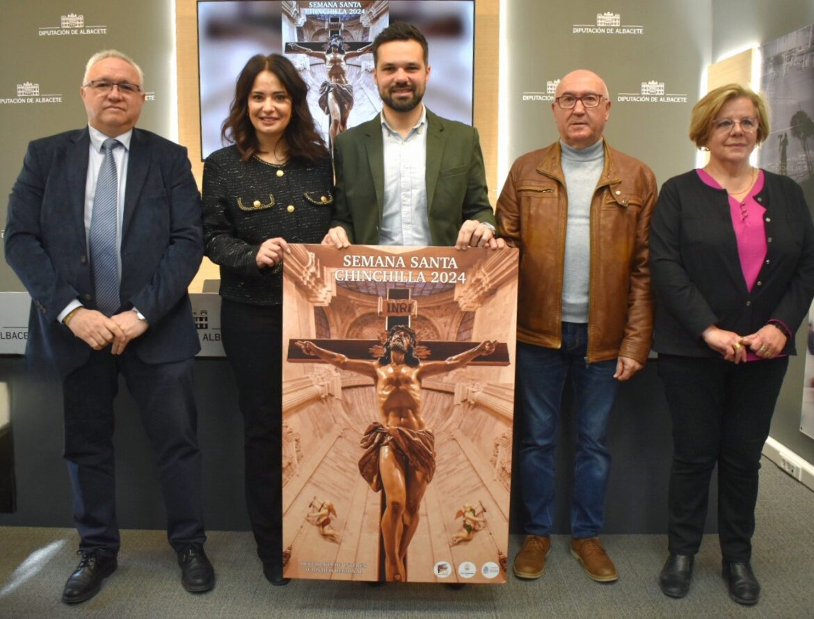 La Diputación de Albacete ha acogido, una edición más, la presentación del cartel de la Semana Santa de Chinchilla y la programación de actividades que desde la localidad se organiza en el marco de esta celebración, extendiéndose hasta el próximo 31 de marzo, tal y como ha explicado el diputado provincial de Cultura, Miguel Zamora, acompañado del alcalde, Francisco Morote; de la concejala del área, Silvia Abellán; y del presidente de la Junta de Cofradías de esta Semana Santa, Diego Gómez.