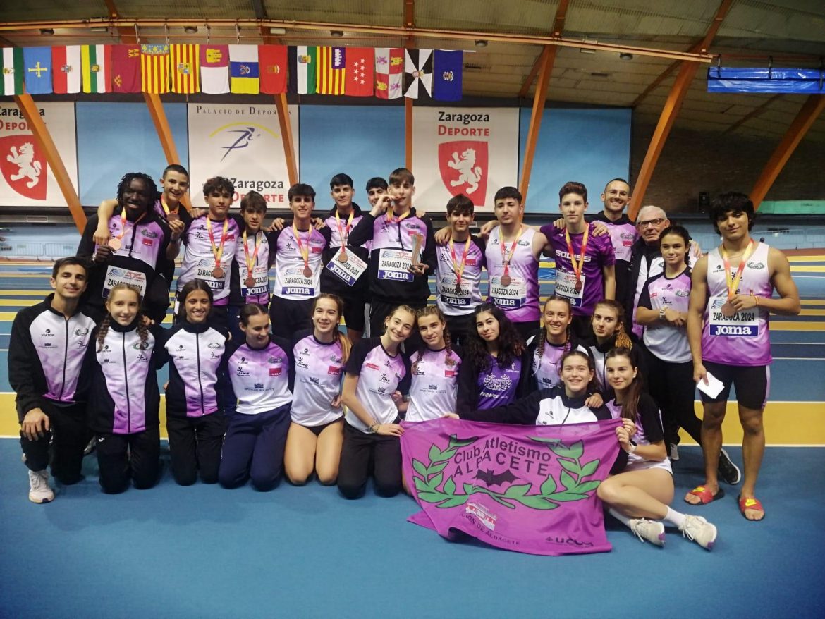 Al igual que ocurriera hace dos meses al aire libre, este sábado en el Palacio de los Deportes de Zaragoza, popularmente conocido como ‘el huevo’, el equipo Sub 16 masculino del Club Atletismo Albacete-Diputación ha conseguido otro bronce nacional, en este caso en pista cubierta, o Short Track como ahora se dice.