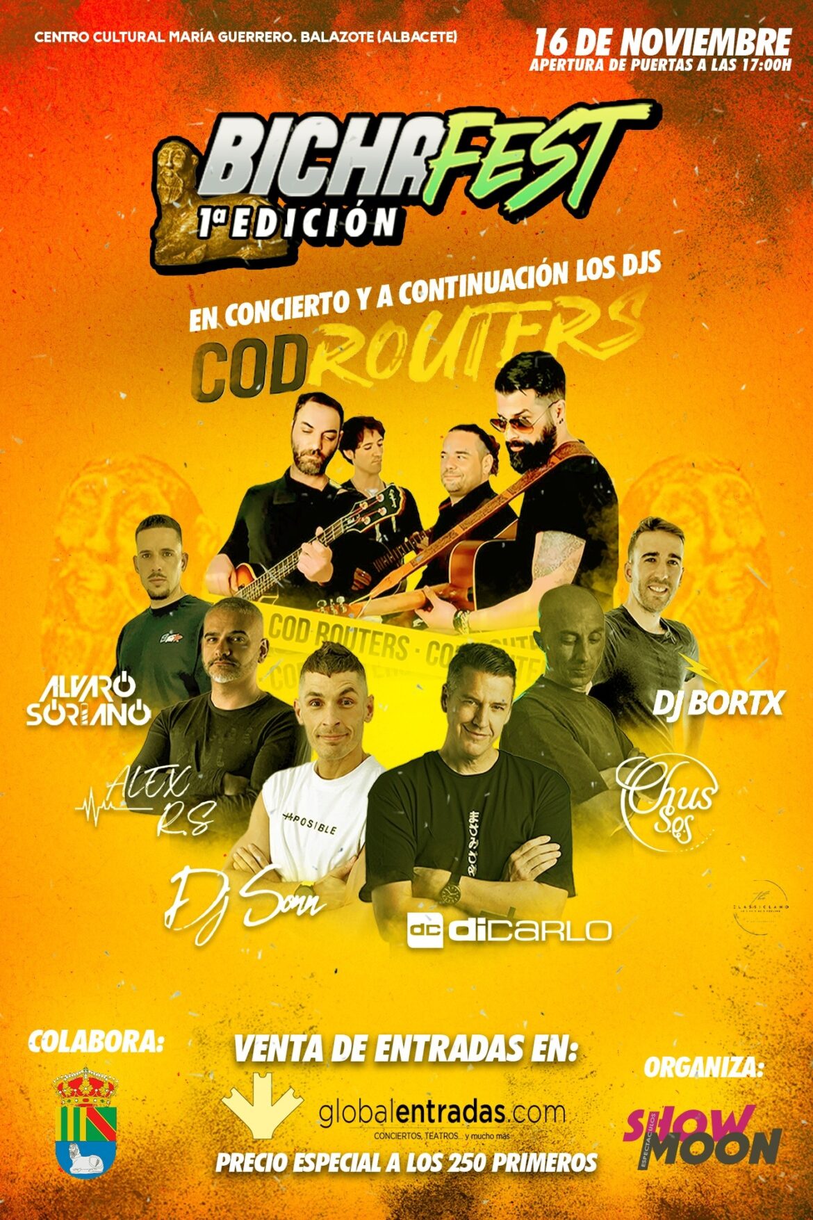 El día 16 de noviembre Balazote celebra su primera edición del festival BICHA FEST. Contará con dj’s de trayectoria nacional sin dejar de apostar por la música en directo en horario de tarde. A partir de las 18:00 de la tarde, se podrá disfrutar de música en directo con el grupo Col routers hará bailar con su pop remenber.