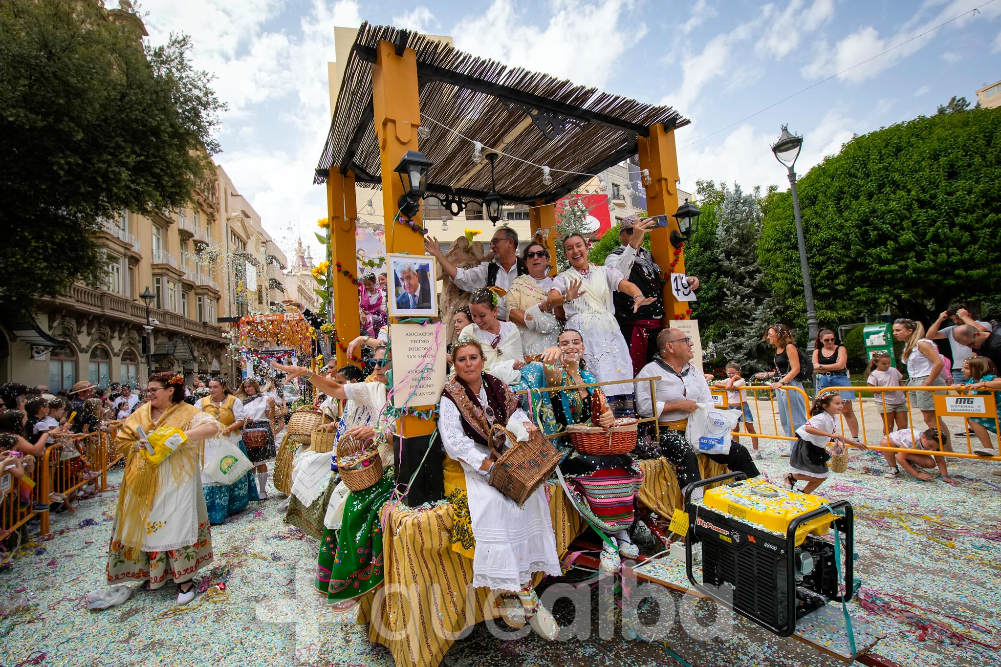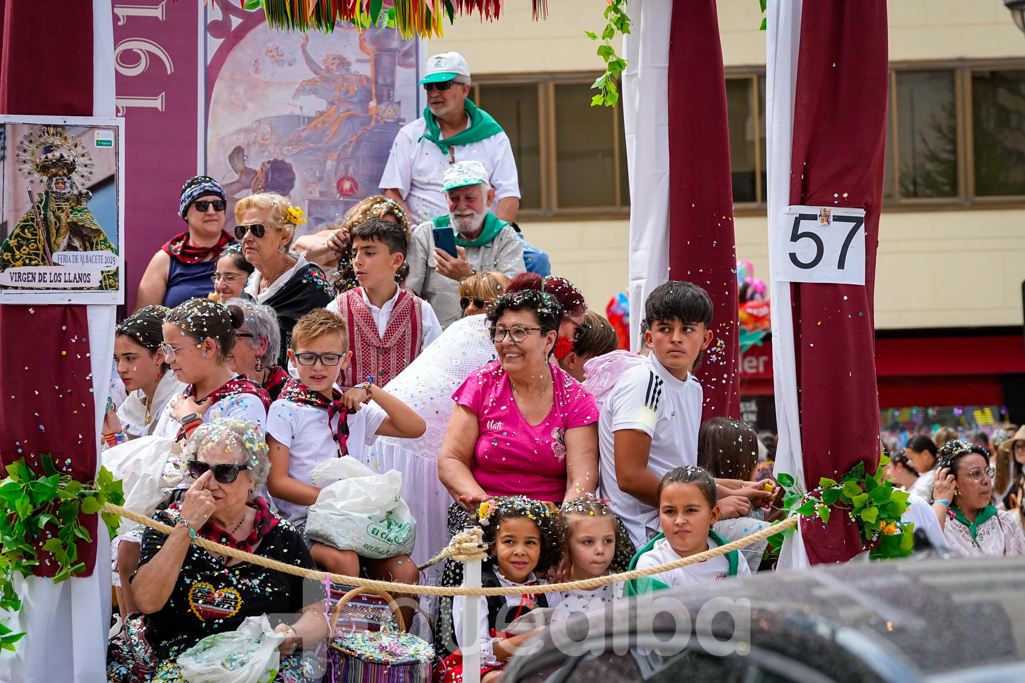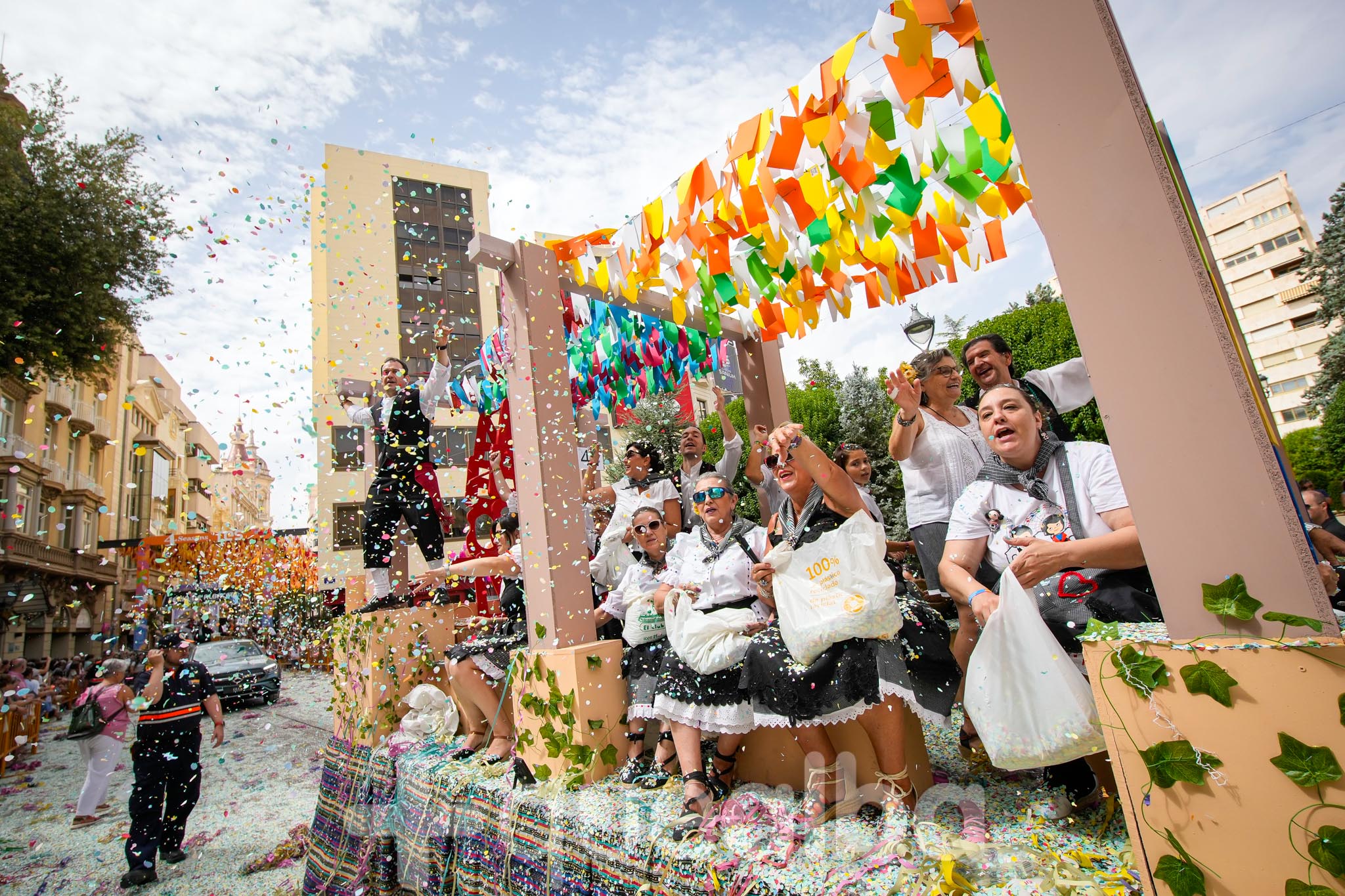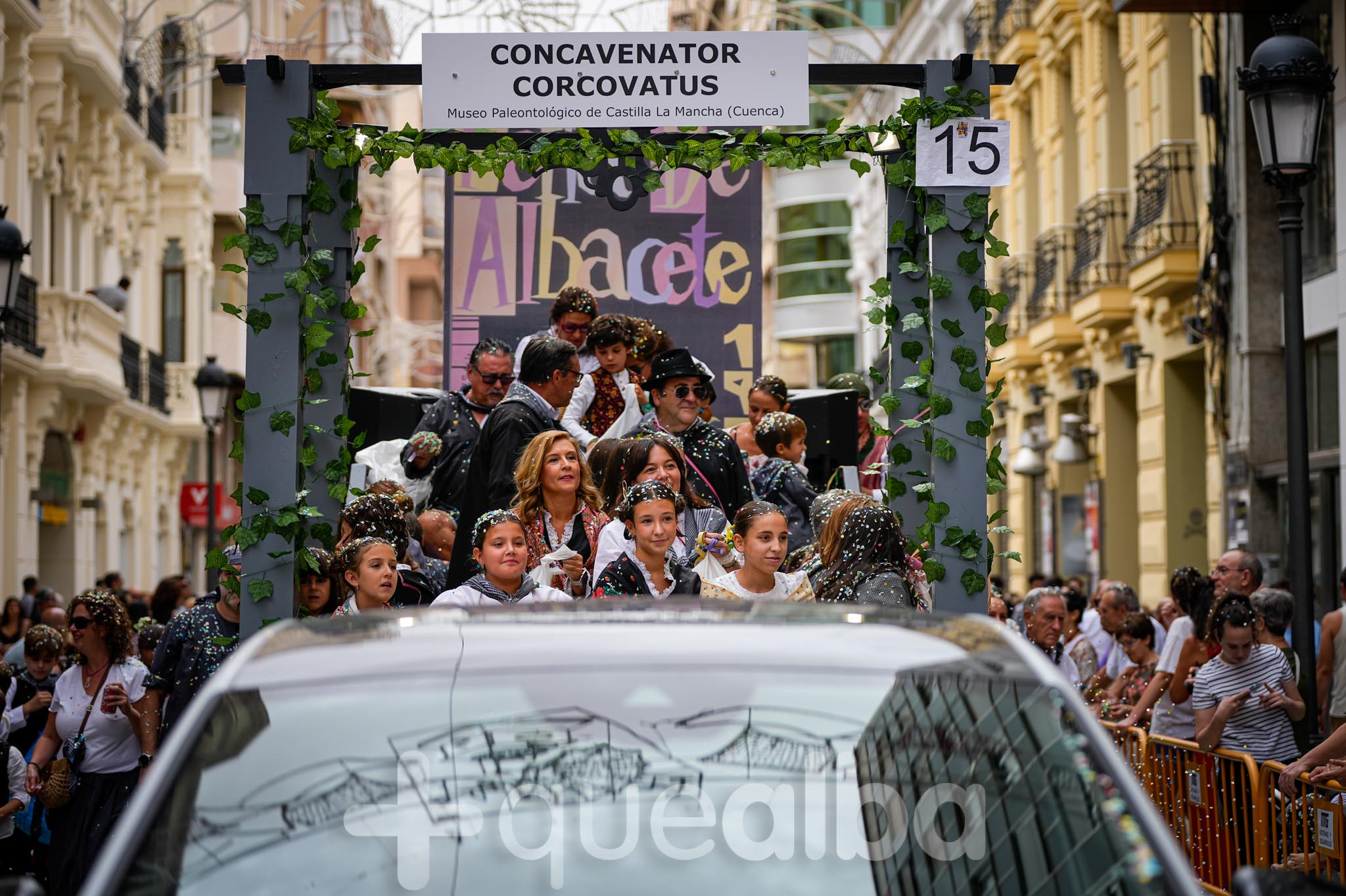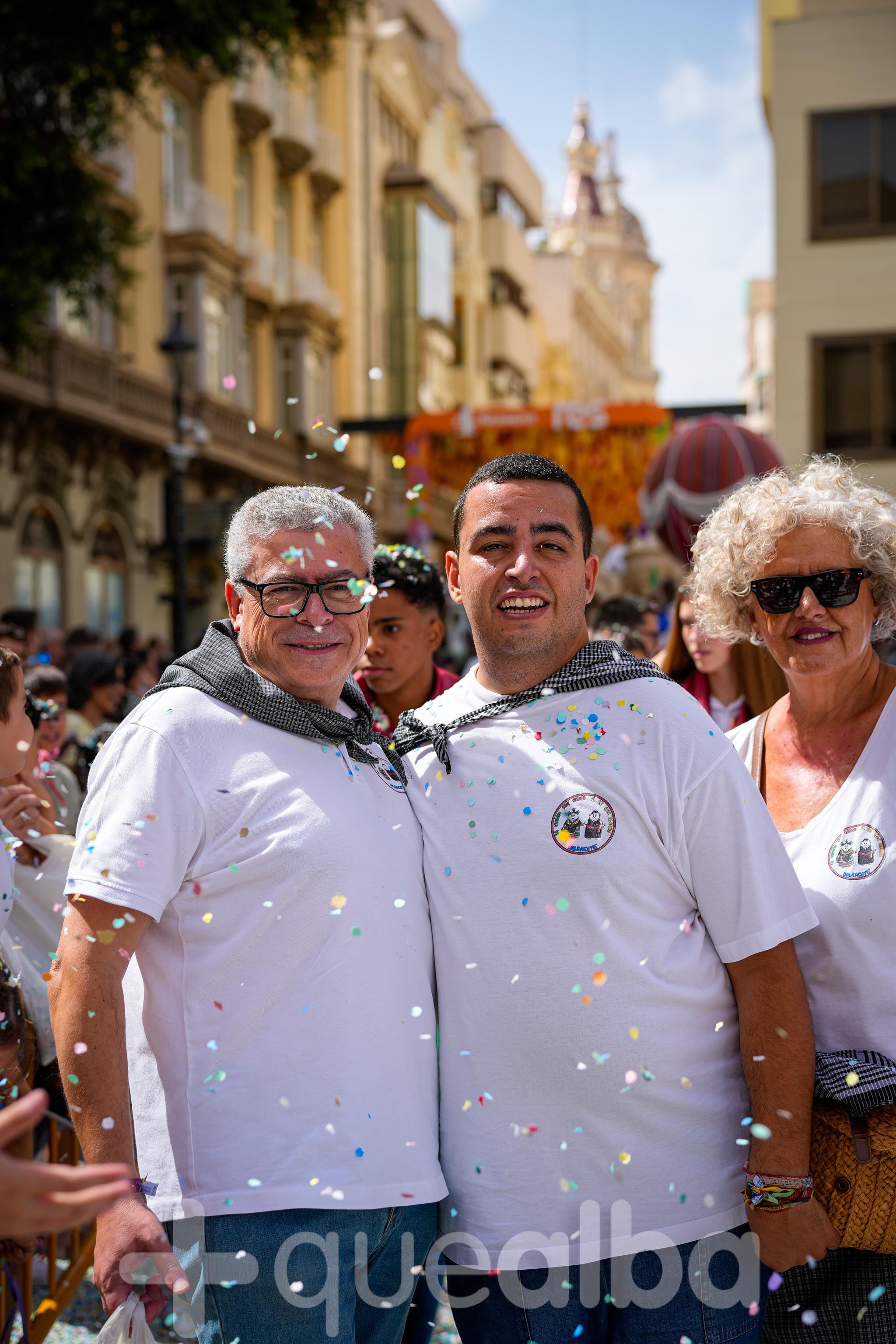 Los concejales de Infraestructuras y Proximidad, Julián Garijo y Carlos Calero, respectivamente, han participado en la tradicional y multitudinaria Batalla de Flores, que ha llenado de animación y color las calles de Albacete en esta mañana ferial del Día de la Patrona.