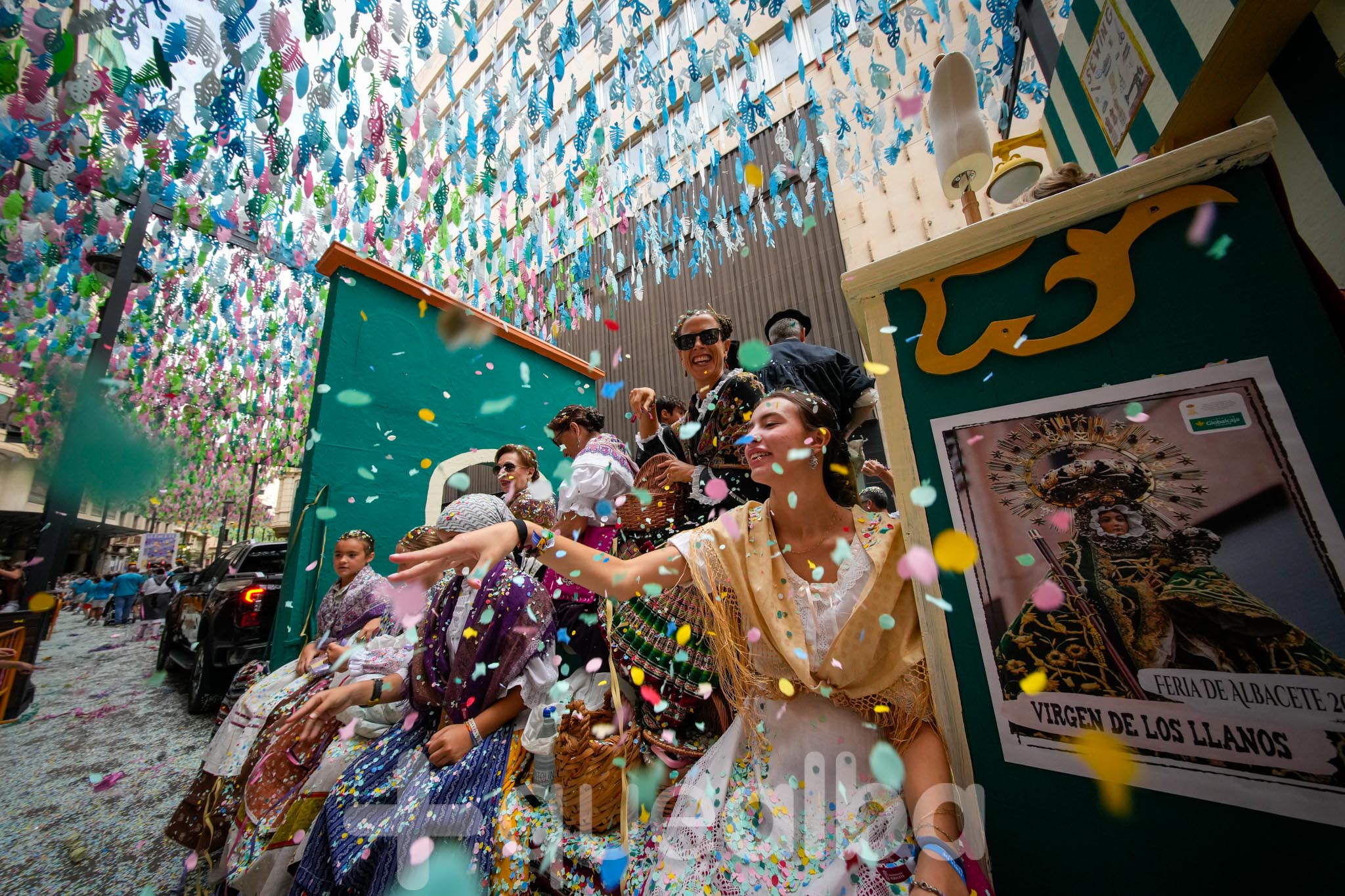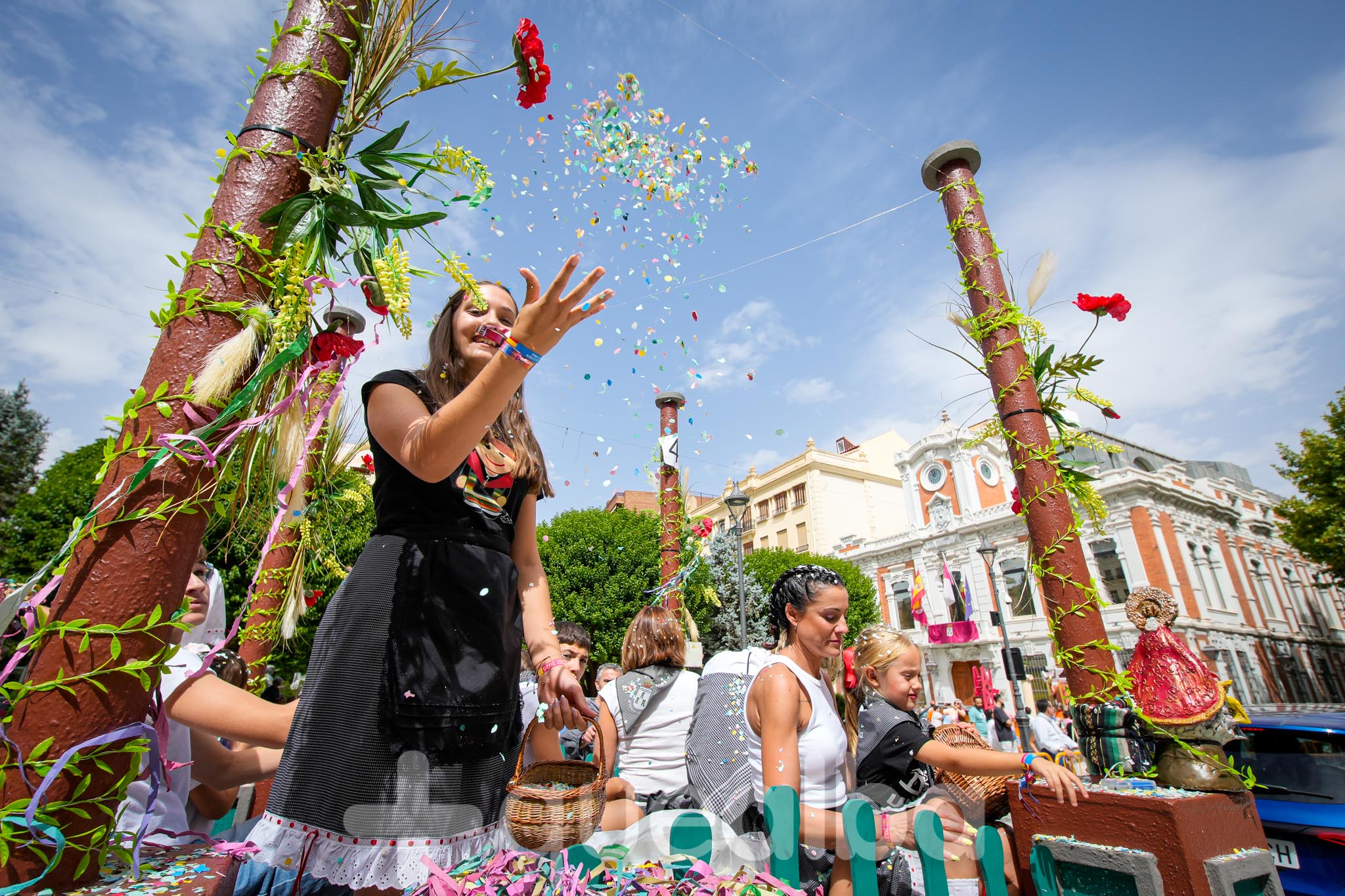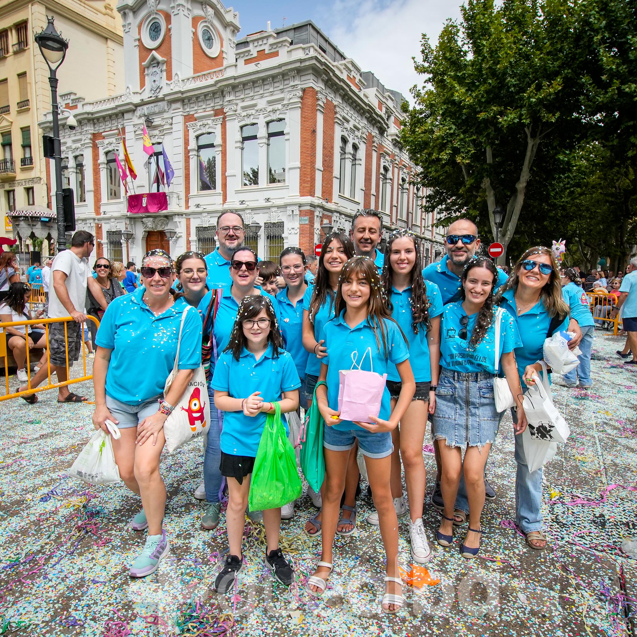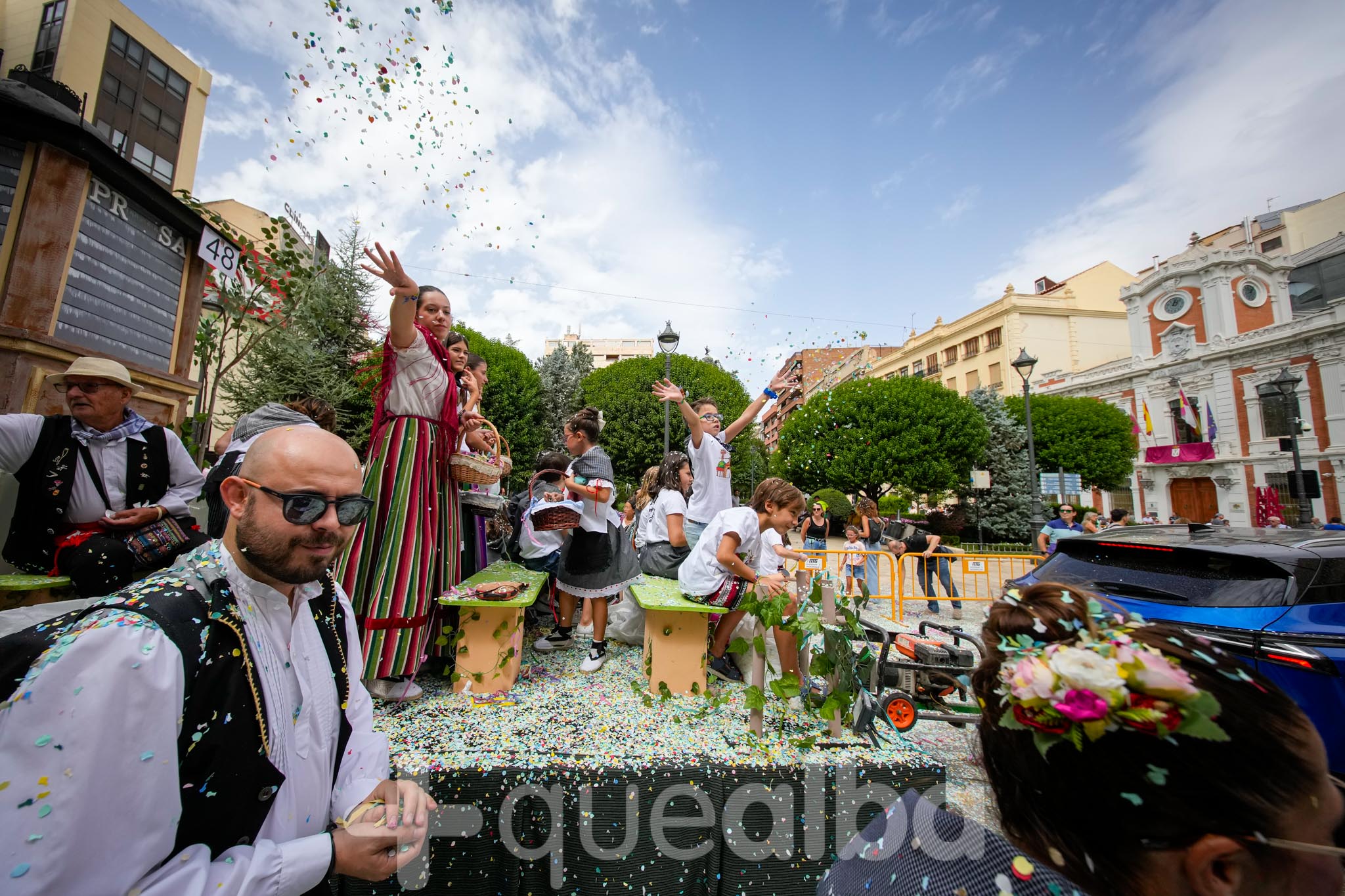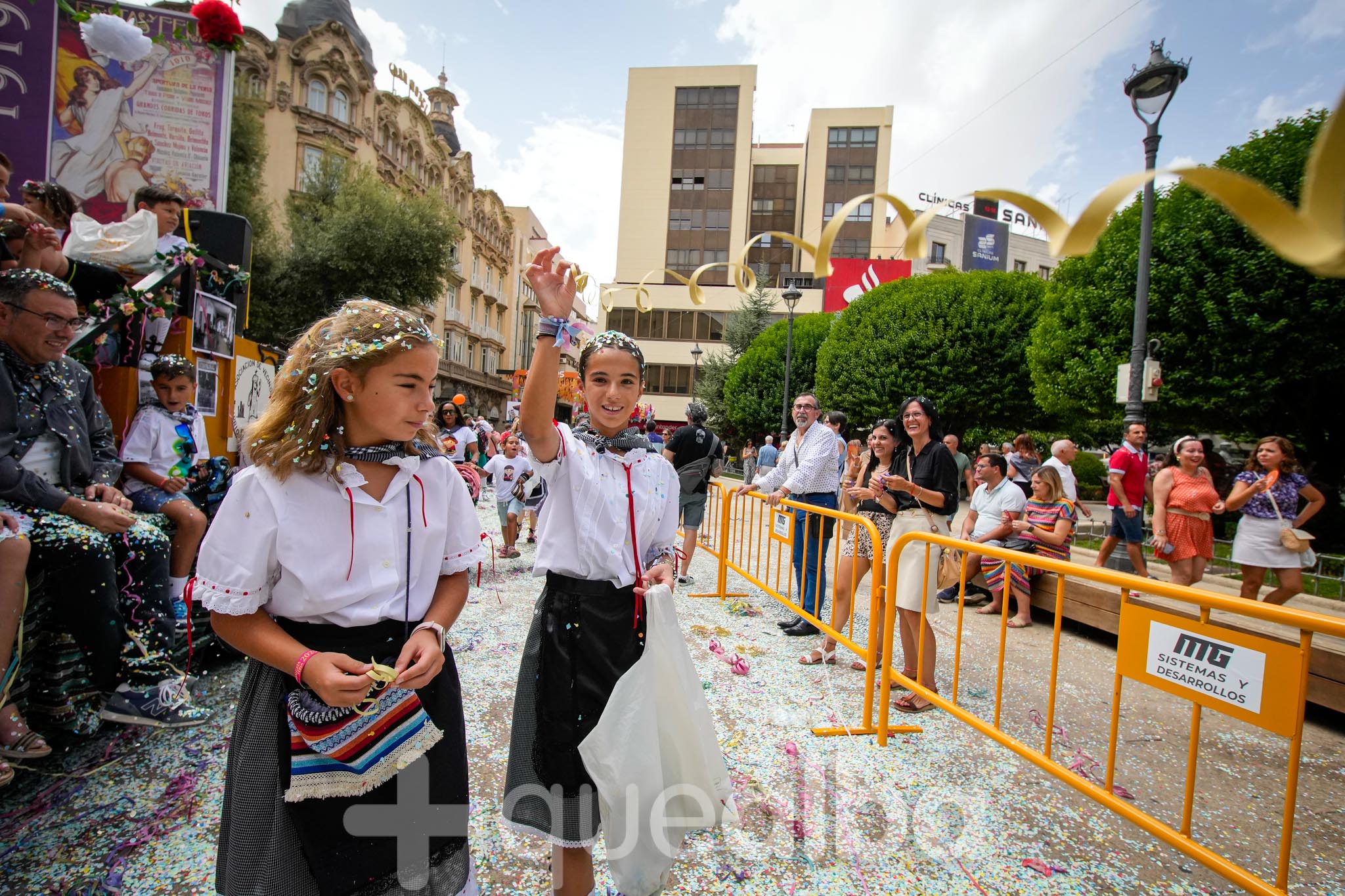 Los concejales de Infraestructuras y Proximidad, Julián Garijo y Carlos Calero, respectivamente, han participado en la tradicional y multitudinaria Batalla de Flores, que ha llenado de animación y color las calles de Albacete en esta mañana ferial del Día de la Patrona.