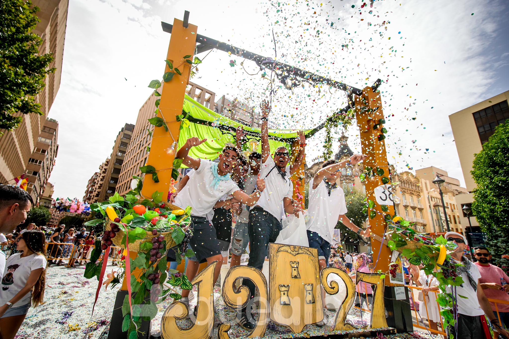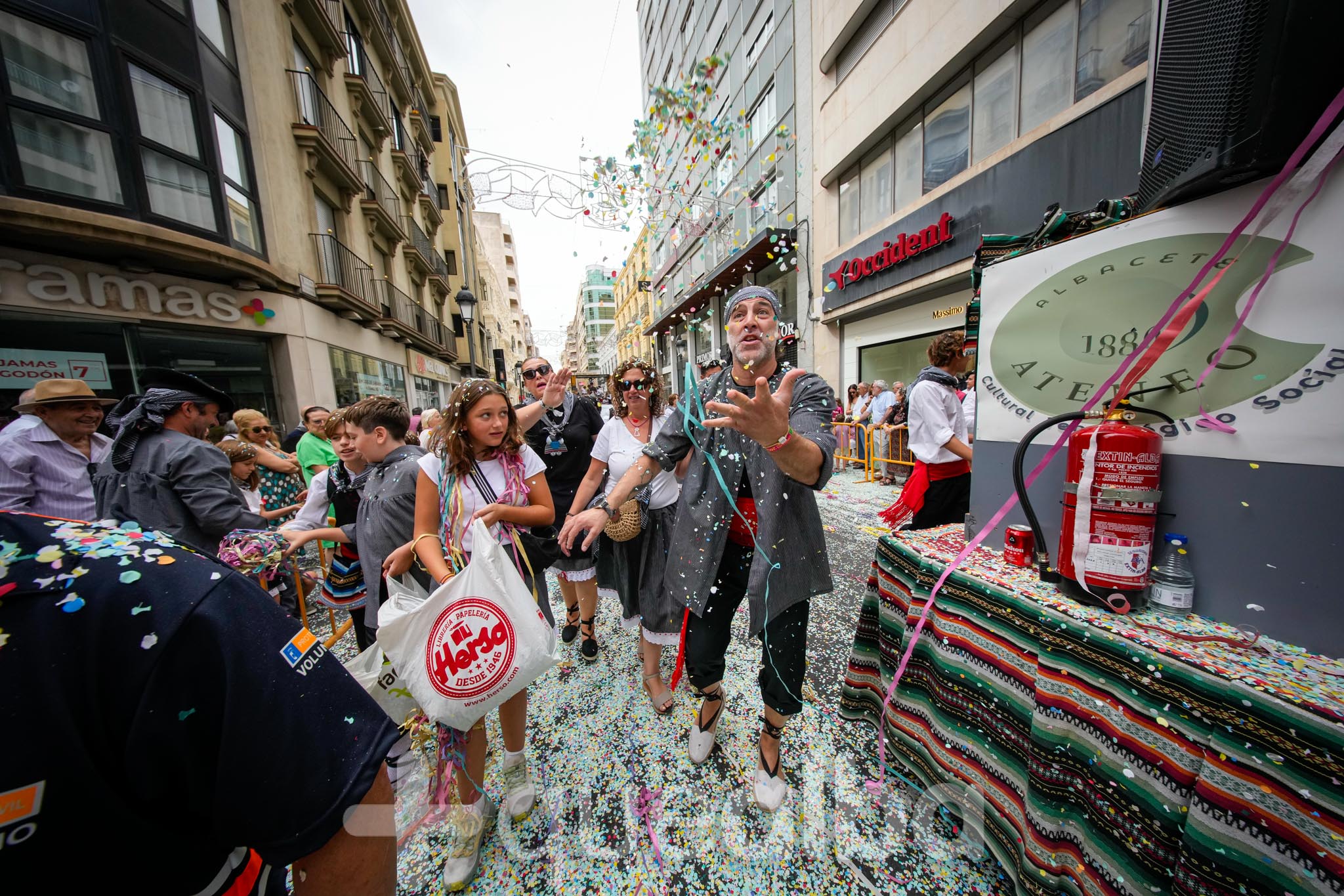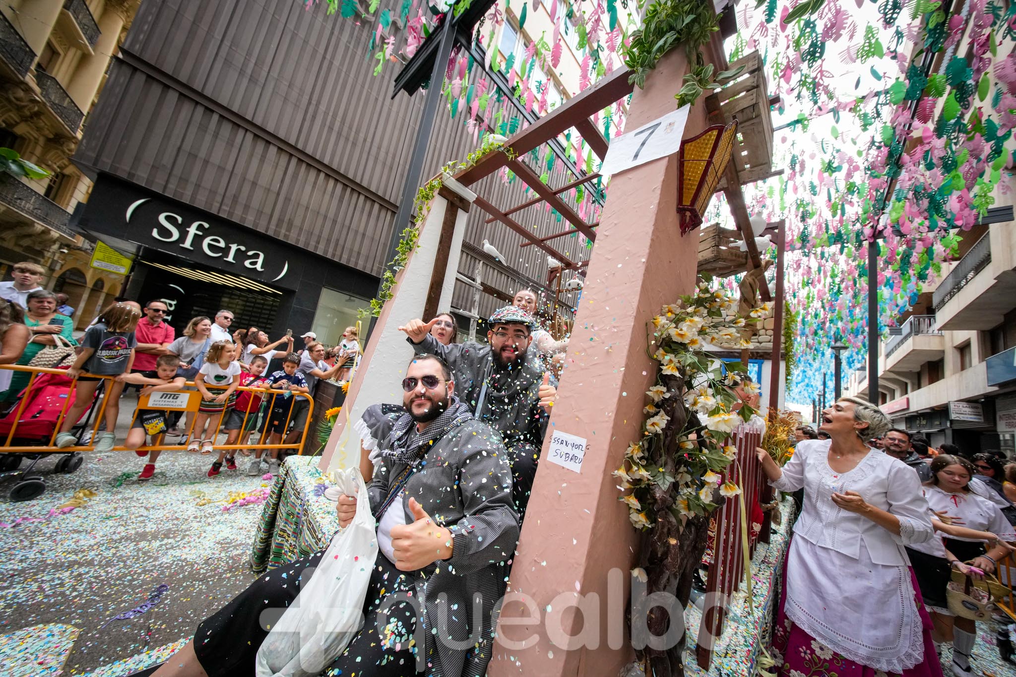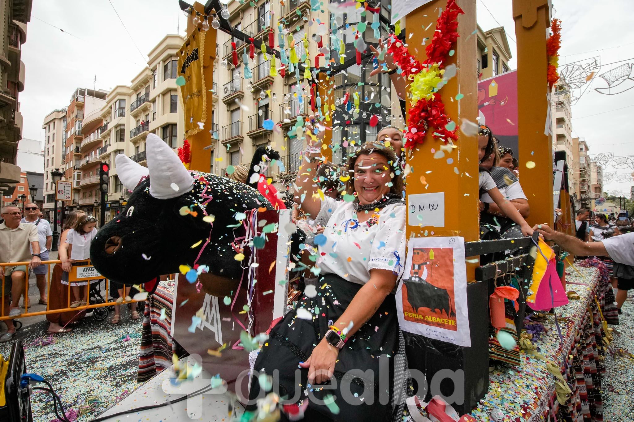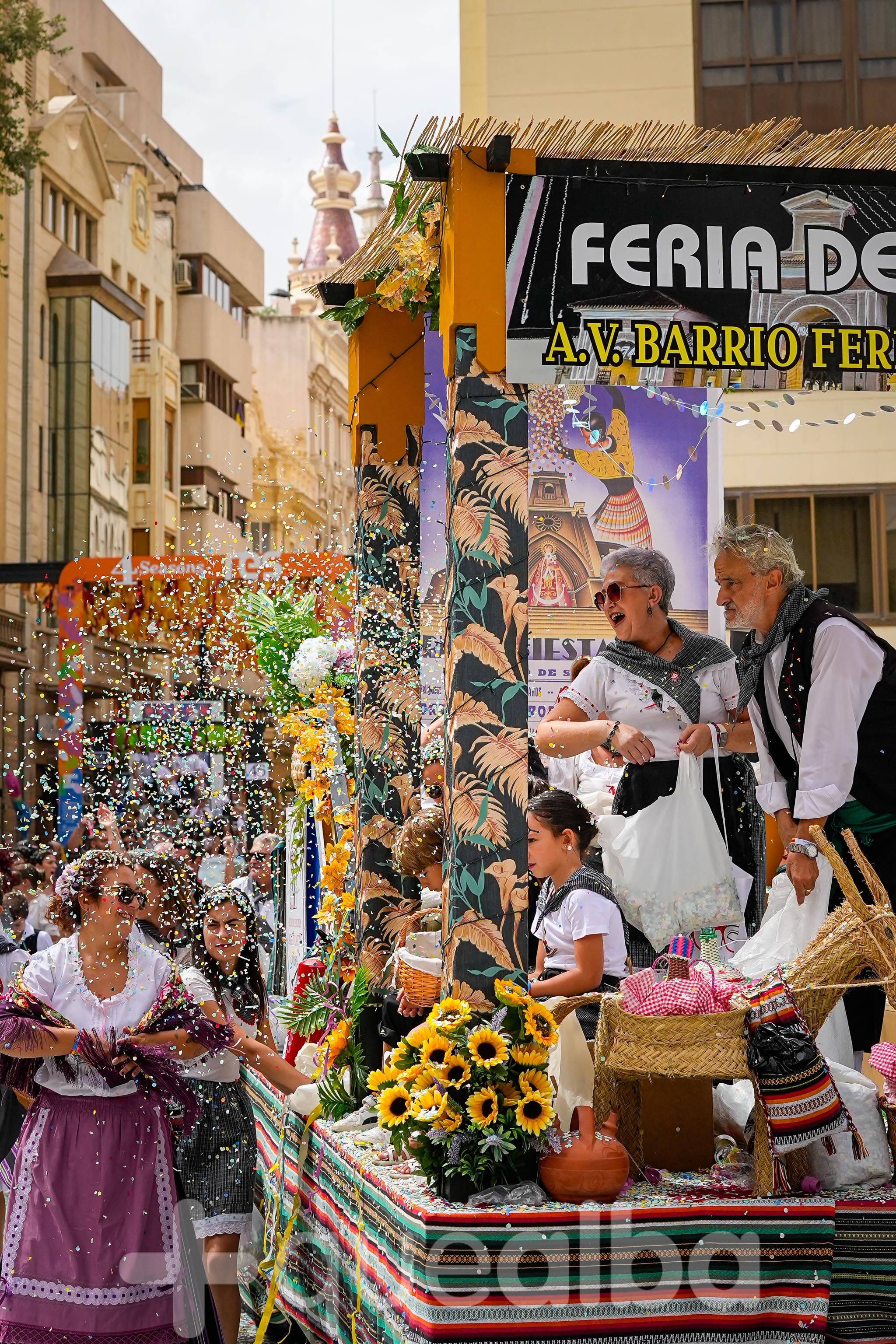 Los concejales de Infraestructuras y Proximidad, Julián Garijo y Carlos Calero, respectivamente, han participado en la tradicional y multitudinaria Batalla de Flores, que ha llenado de animación y color las calles de Albacete en esta mañana ferial del Día de la Patrona.